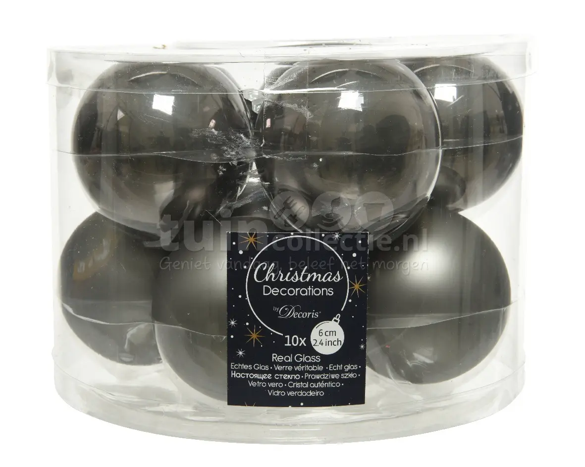 Kerstballen Glas Ø6cm Warm Grijs 10st