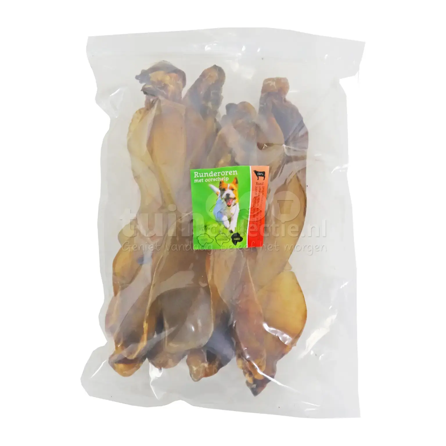 Deze grote runderoren met oorschelp zijn een heerlijke traktatie voor jouw trouwe viervoeter! Ze zijn 100% natuurlijk en vormen daardoor een gezonde snack voor je hond. Deze gedroogde hondensnacks hebben kauwlevel 3 - Hard. In de verpakking zitten 9 stuks runderoren met oorschelp. Met deze runderoren heeft je hond gegarandeerd kauwplezier! Niet geschikt voor puppy’s jonger dan 4 maanden.