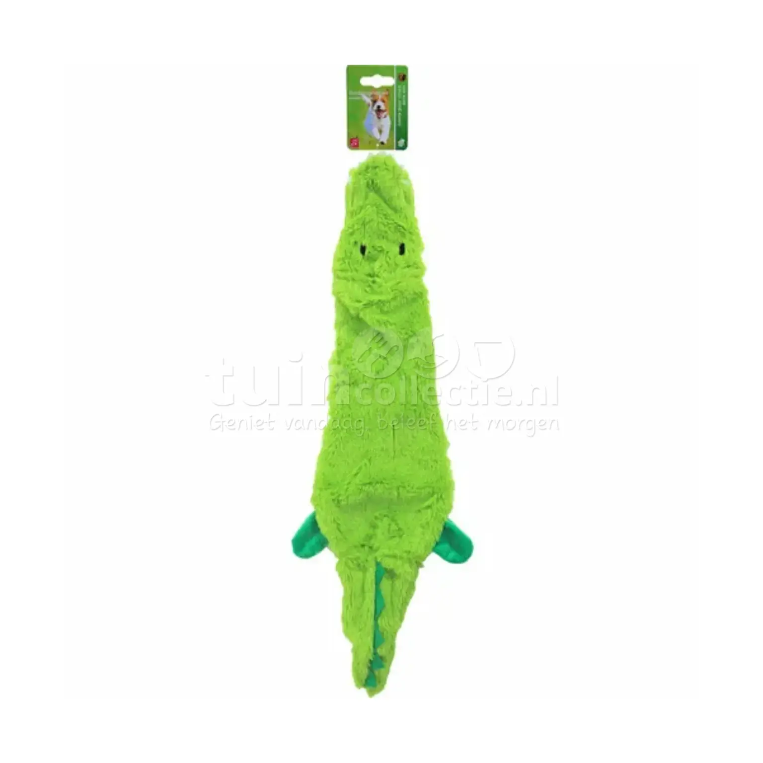 Geef je huisdier het perfecte knuffelmaatje! Deze krokodil is gemaakt van zacht pluche. Door zijn lengte van 35cm is deze platte knuffel geschikt voor kleinere honden. Het speeltje maakt een piepgeluid wanneer erop geknepen of gebeten wordt. Bovendien heeft het speelgoed geen losse onderdelen aan de buitenzijde, waardoor het extra veilig is voor jouw trouwe viervoeter. Deze pluche krokodil is perfect om mee te knuffelen en te spelen, maar let op: het is geen kauwspeeltje!