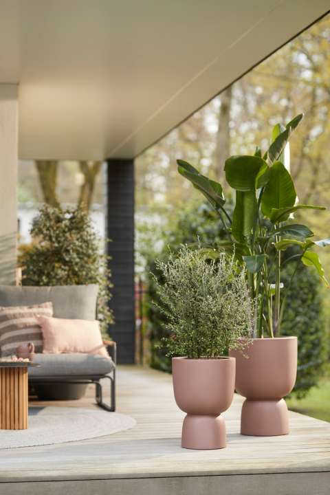 Helemaal volgens de laatste trends heeft Elho de Pure Coupe bloempot ontworpen! Deze kunststof bloempot bestaat uit zachte, organische vormen en is verkrijgbaar in diverse moderne kleuren, waaronder deze variant in de kleur Rosy Brown. Hij bestaat uit twee delen, waardoor je er eenvoudig hoogte mee creëert! Deze pot heeft een hoogte van 49cm en een diameter van 35cm. Daarbij is het kunststof van hoogwaardige kwaliteit en is de pot geproduceerd met windenergie van de eigen Elho windmolen. Ook is de pot volledig recyclebaar, licht van gewicht, uv- en vorstbestendig en kan hij prima tegen een stootje. De Elho Pure Coupe bloempot kan zowel binnen als buiten gebruikt worden. Binnen is hij meteen al klaar voor gebruik, maar ga je hem buiten plaatsen, vergeet dan niet om het aangegeven gaatje binnenin de pot door te boren. Zo kan het overtollige water eenvoudig weglopen en wordt wortelrot voorkomen. Aangezien de bloempot licht van gewicht is, kan het onderste deel gevuld worden met zand en afgesloten worden met de bijgeleverde dop. Dit zorgt voor extra stabiliteit, waardoor hij zelfs bij stormachtig weer beter op zijn plek blijft staan. Combineer de verschillende kleuren en maten van de Elho Pure Coupe bloempotten collectie voor een speels effect of laat er één de echte eyecatcher zijn!