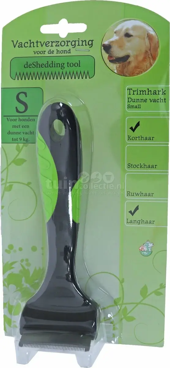 Met deze Trimhark kun je de vacht van je hond goed verzorgen. De borstel verwijderd alle losse en dode haren uit de onder en bovenvacht. Door regelmatig je hond te borstelen blijft de vacht glanzend schoon en ontstaan er minder snel klitten. Verzorg de vacht altijd in de richting van de haargroei. Zo blijft de vacht van je hond in goede conditie. Deze trimhark is geschikt voor alle kort en langharige honden met een dunne vacht. De ronde vorm van het mes zorgt ervoor dat je op alle delen optimaal contact houdt met de vacht.