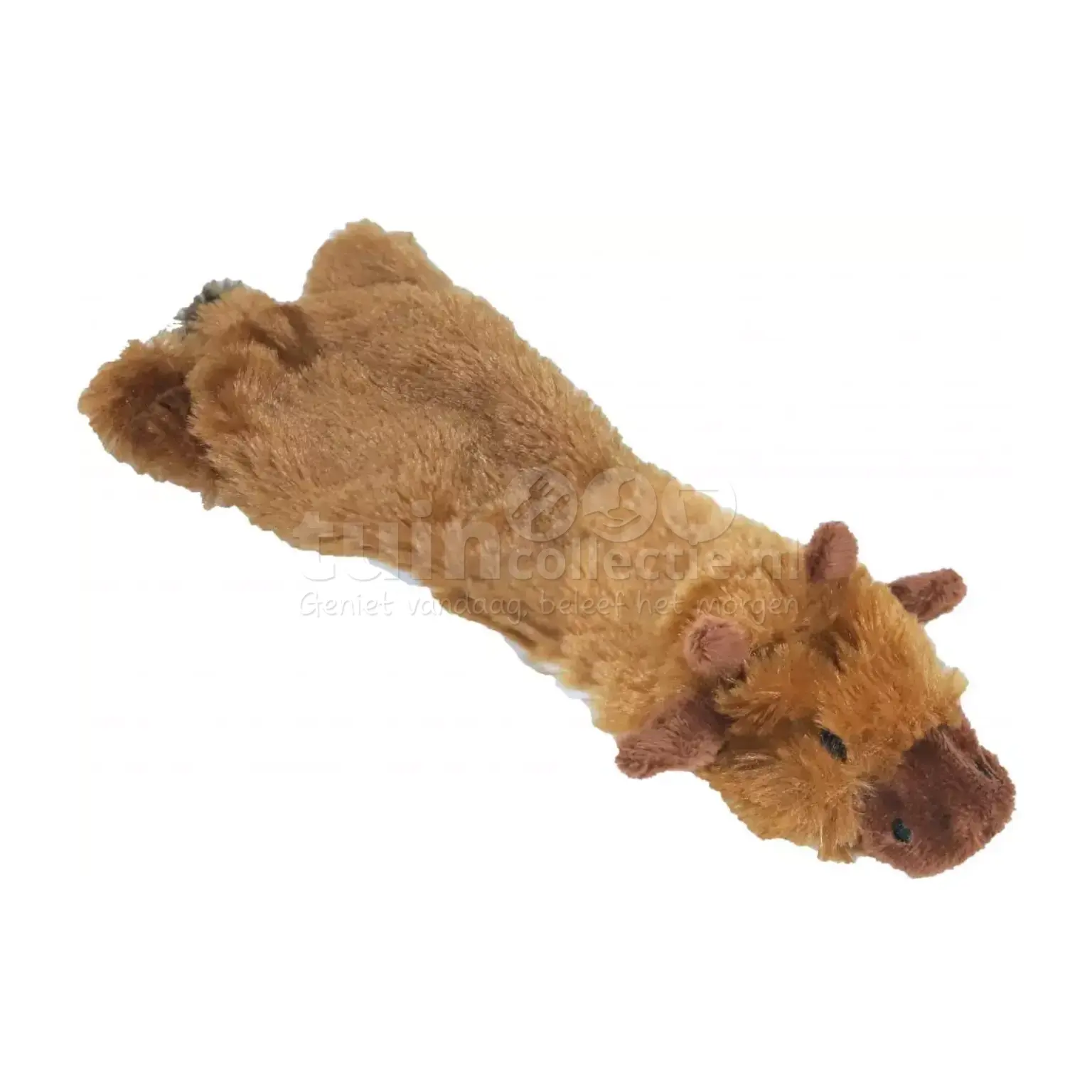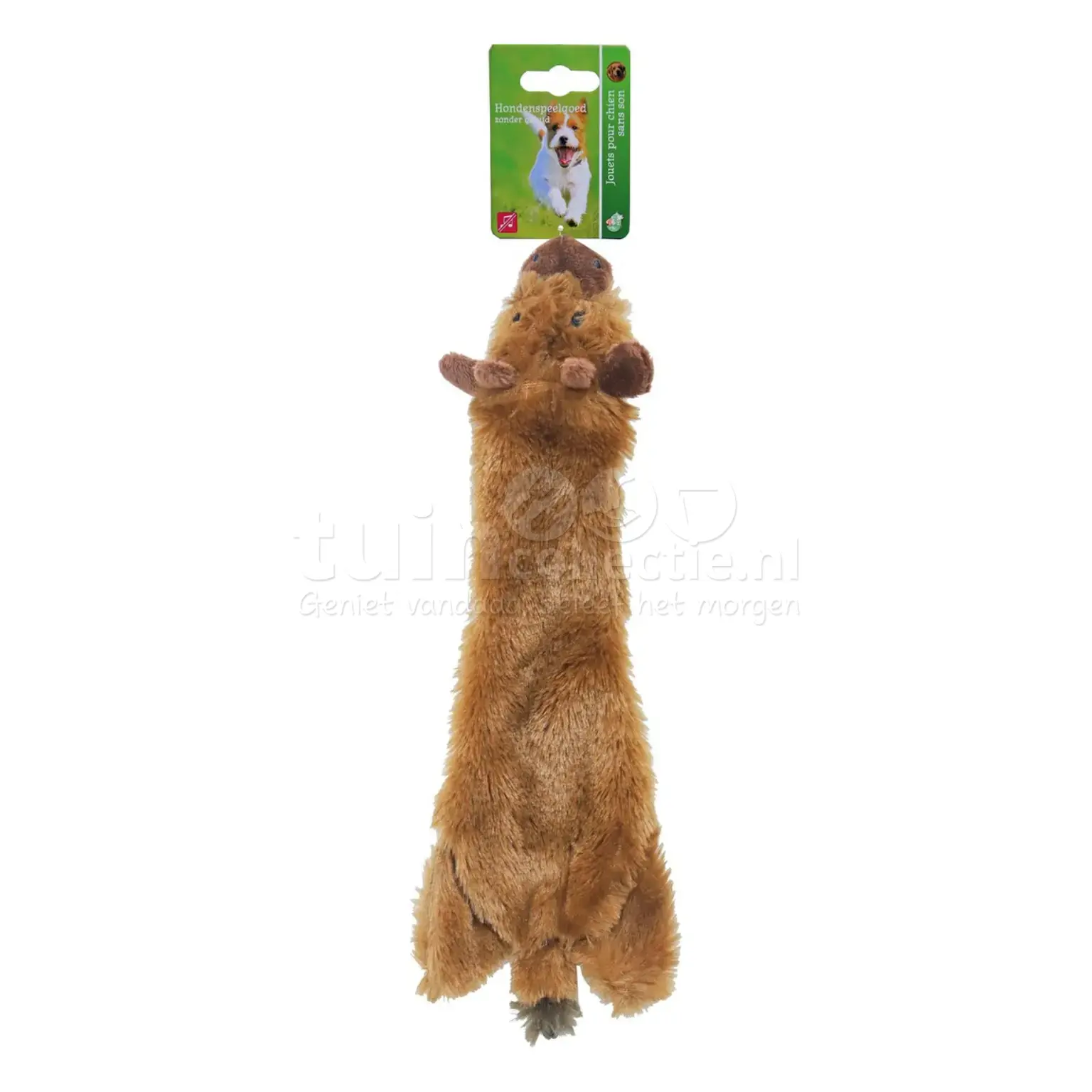 Geef je huisdier het perfecte knuffelmaatje! Deze eland is gemaakt van zacht pluche. Door zijn lengte van 35cm is deze platte knuffel geschikt voor kleinere honden. Het speeltje bevat 2 piepers en maakt daardoor een piepgeluid wanneer erop geknepen of gebeten wordt. Bovendien heeft het speelgoed geen losse onderdelen aan de buitenzijde, waardoor het extra veilig is voor jouw trouwe viervoeter. Deze pluche eland is perfect om mee te knuffelen en te spelen, maar let op: het is geen kauwspeeltje!