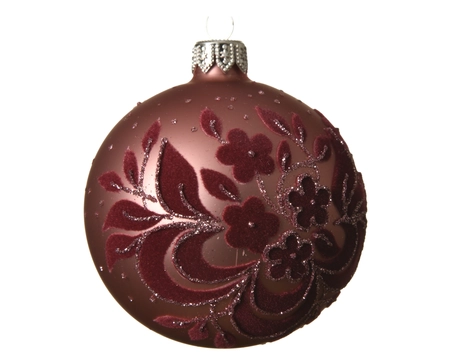 Kerstbal Glas Flowers Ø8cm Velvet Roze 1st