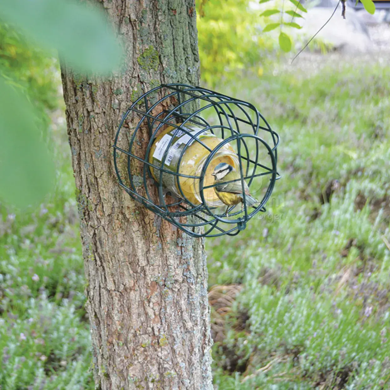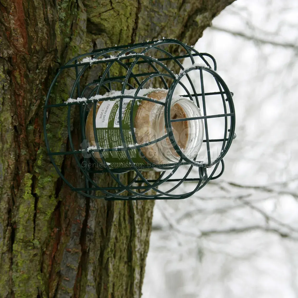 Deze metalen pindakaaspot houder past in iedere tuin en is specifiek voor kleinere vogels. De beschermkooi biedt de vogeltjes de kans om rustig van de pindakaas te smullen. Tevens is hij gemakkelijk op te hangen aan de muur, boom of of schutting. Middels het luikje, is de vogelpindakaas eenvoudig in de houder te plaatsen.