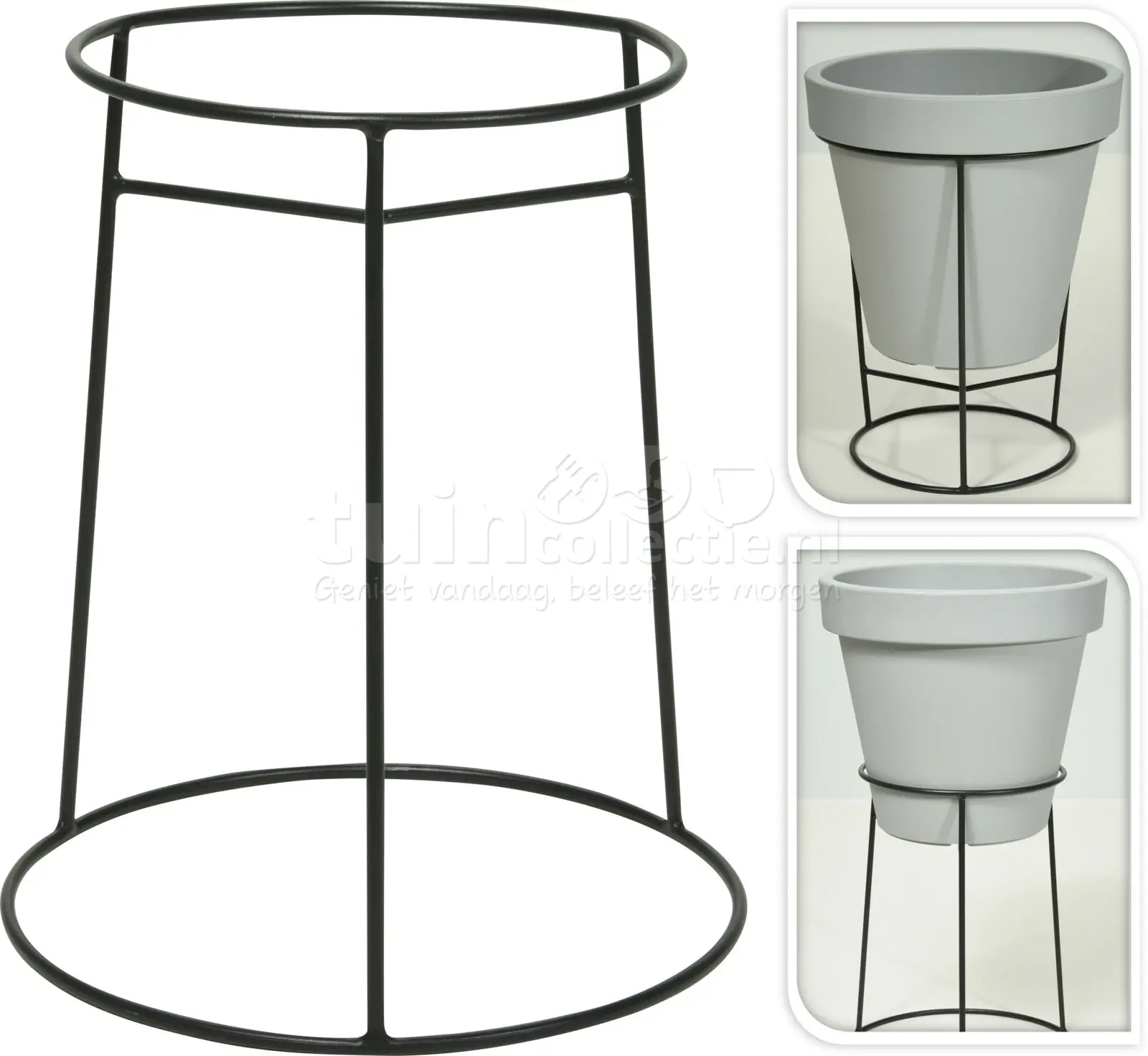 Een plantenstandaard wordt al veel binnenshuis gebruikt om hoogteverschil te creëren, maar is er nu ook voor buiten in de tuin! Deze plantenstandaard van metaal is o.a. geschikt voor een kunststof bloempot met rand. De metalen plantenstandaard is voorzien van een antracietkleurige coating, waardoor hij geschikt is voor buiten. Verder is hij op beide kanten te gebruiken en kies je eenvoudig of de bloempot hoog of laag in de standaard mag staan. De bloempothouder is 53cm hoog en heeft een diameter van 45cm. De getoonde bloempot op de afbeelding heeft aan de bovenzijde een diameter van ca. 50cm en aan de onderzijde een diameter van ca. 42,5cm. Bestel een passende bloempot eenvoudig mee met de plantenstandaard!