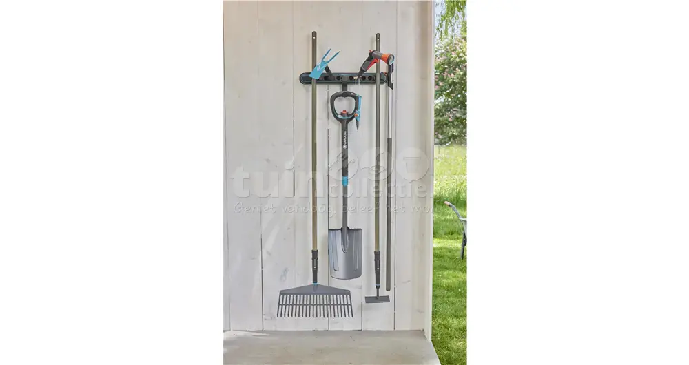 Berg je tuingereedschap ruimtebesparend op met de Gardena gereedschapshouder Flex! Hij is geschikt voor combisystem-accessoires, stelen en tuingereedschappen die uit één stuk bestaan. Deze gereedschaphouder is gemaakt van hoogwaardig plastic en heeft een totale lengte van 49,5cm. Daarbij wordt hij geleverd inclusief één universele haak, twee stelenhouders en twee gereedschapshouders voor de combisystem-accessoires, incl. haakjes. Aan de haakjes kunnen eenvoudig snoeischaren of andere kleine tuingereedschappen opgehangen worden. Ook zijn deze twee pluggen in stappen van 30° te draaien en naar wens te positioneren. De bijgeleverde onderdelen passen in elke opening van de houder. Hij is eventueel ook uit te breiden met meerdere onderdelen. De Gardena Flex gereedschapshouder wordt geleverd inclusief bevestigingsmateriaal.