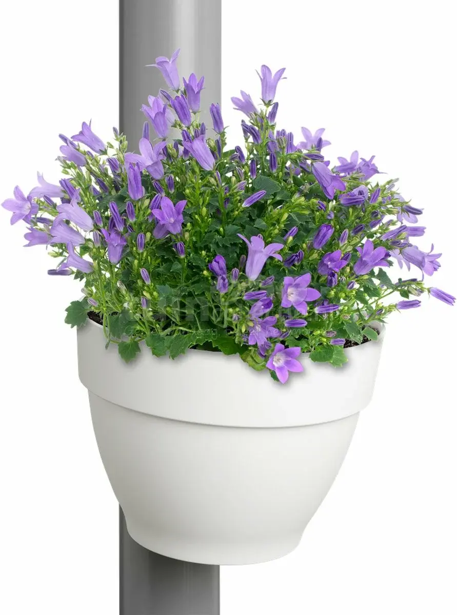 Op zoek naar nieuwe manieren om je te omringen met groen? Met deze witte regenpijp plantenbak tover je ook je regenpijp om in een groene oase! Het Vibia Campana regenpijpbakje van Elho bevestig je eenvoudig aan je regenpijp met de meegeleverde klitteband strap. Je wikkelt de klittenband om je regenpijp en trekt deze strak aan. Dankzij het anti-slip gedeelte welke je aan de achterzijde van de regenpijp bevestigd, glijdt de bloempot niet naar beneden. Het regenpijp plantenbakje kun je vervolgens eenvoudig aan het clipje hangen. De bloempot is gemaakt van 100% gerecycled plastic en de bodem van de pot heeft een overlooppijpje wat zorgt voor opslag van een kleine watervoorraad en waardoor overtollig water weg kan lopen. Zo blijven jouw planten in optimale conditie. Verder is de bloempot 16cm hoog en heeft hij een totale diameter van ca.22cm.