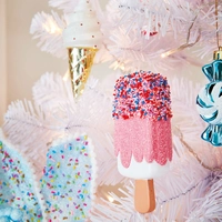 Maak een feest van jouw kerstboom met dit leuke ijsje kerstboomhanger. Dit kerst ornament in de vorm van een ijs op stokje is gemaakt van plastic. Het ijsje is wit met roze van kleur en bovenaan bedekt met gekleurde kraaltjes. Het ijsstokje is lichtbruin van kleur. Verder is dit ijsjes kerstboomhanger 13cm hoog, 5,5cm lang en 3cm breed. Hang hem eenvoudig aan een tak in de kerstboom en geniet van de vrolijkheid die hij de boom geeft!