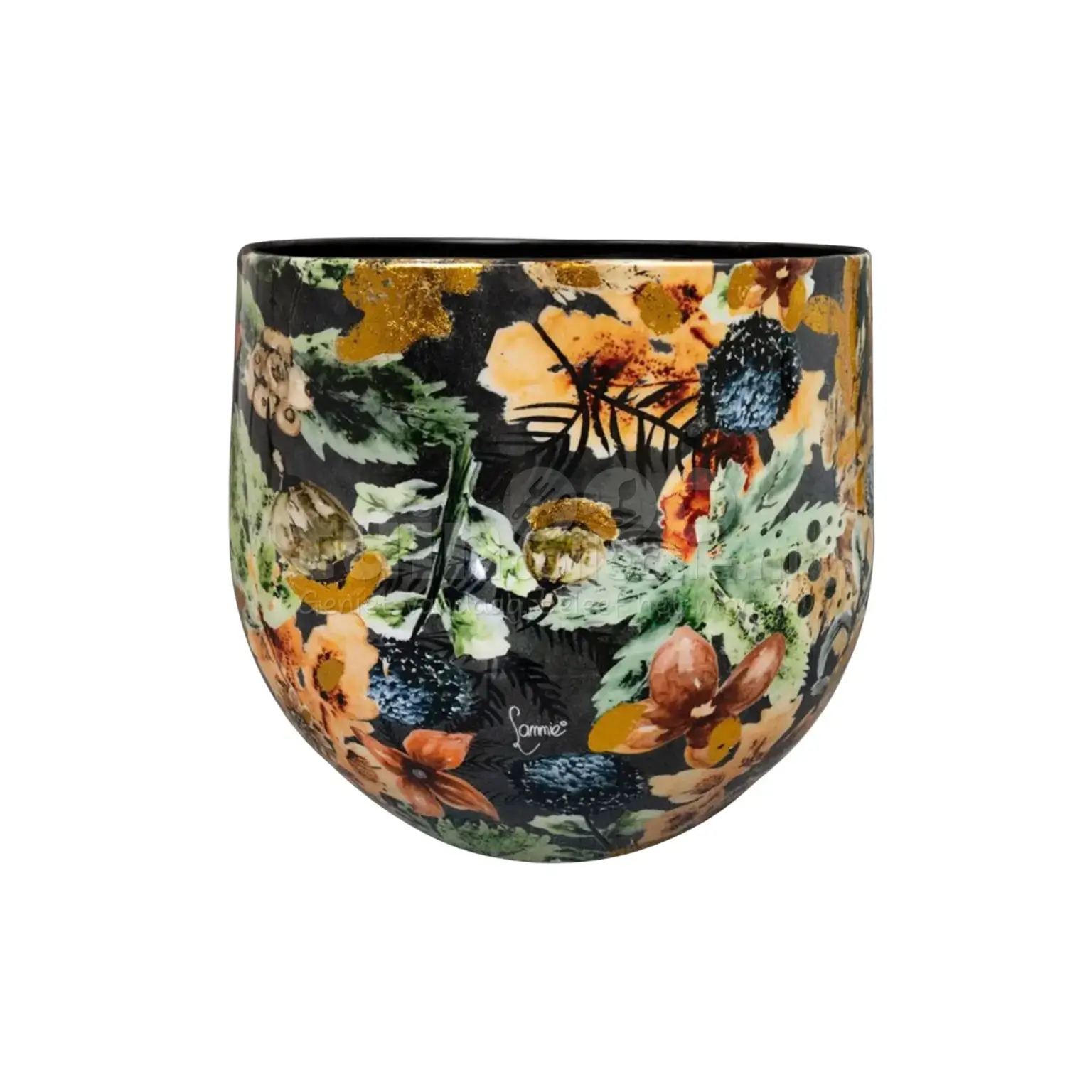 Kunstenares Lammie creëerde speciaal voor TS Collection prachtige prints met ieder een eigen verhaal. Deze rijke weelderige print, Berry Blue, is een ode aan de liefde. Want wist je dat de nederige bes een symbool is voor de liefde? Venus, Godin van de Liefde, wordt dikwijls afgebeeld met deze bessen. Met dit in gedachten maakte Lammie een unieke artistieke print met illustraties van bessen, bloemen en blad. De kleuren op deze print zijn avontuurlijk en passioneel. Donkere blauwtinten, warme aardekleuren, opgewekt groen en natuurlijk Lammie's fameuze Touch of Gold. Het design is herfstachtig met een zacht contrast. Dit zorgt ervoor dat de potten uit deze serie opvallen maar ook blenden in het interieur.