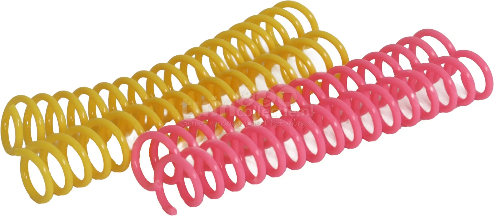 Springveren zijn één van de meeste populairste speeltjes onder katten en kittens. Op deze kaart zitten 4 springveren van 10cm lang in de kleuren geel en roze. De springveren stimuleren het jachtinstinct van je geliefde kat. Met dit speelgoed kan jouw kat zich urenlang vermaken.