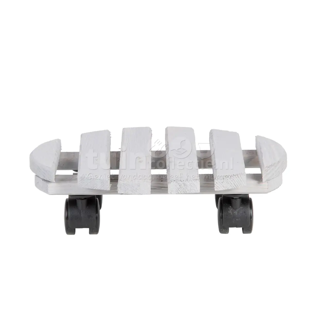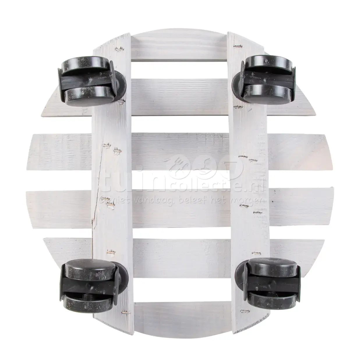 Verplaats eenvoudig zware bloembakken en planten met deze plantentrolley van Esschert Design. De ronde plantentrolley is gemaakt van vurenhout en is lichtgrijs van kleur. Hij heeft een diameter van 29cm en kan een maximaal gewicht van 100kg dragen. Verder zijn er aan de onderzijde 4 zwenkwielen bevestigd, die voor extra stabiliteit en wendbaarheid zorgen. Deze plantentrolley is ook ideaal om vast onder een plant te plaatsen, waardoor de plant op elk moment snel en eenvoudig te verplaatsen is. Hij is geschikt voor binnen en buiten.