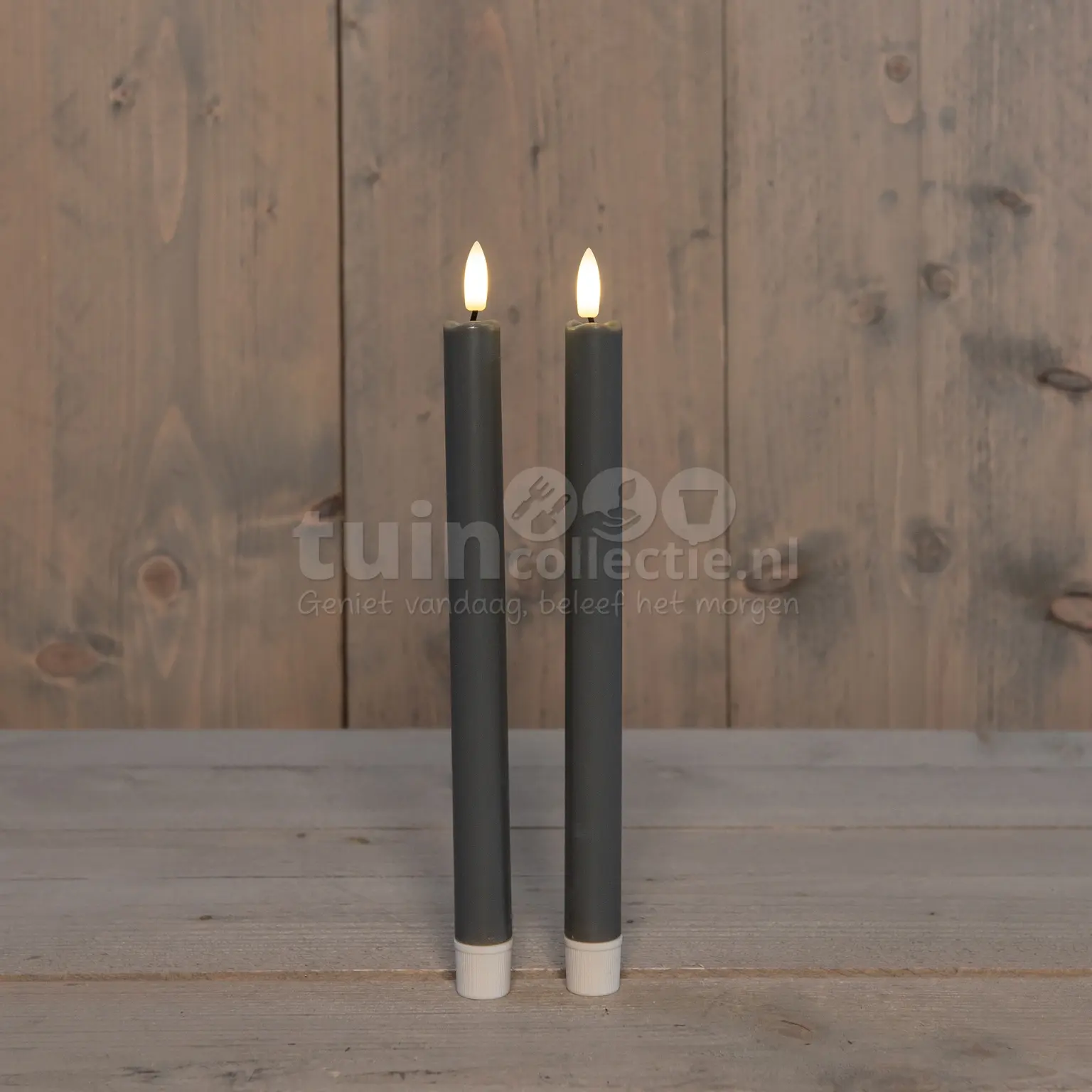 Geniet jaarrond van veilig en sfeervol kaarslicht in huis met deze LED dinerkaarsen. Deze set bestaat uit 2 kunststof kaarsen en zijn voorzien van een 3D vlameffect. Ze zijn taupe van kleur en hebben een hoogte van 26cm. De vlamverlichting in elke LED dinerkaars werkt op 2 AAA-batterijen. Tevens zit er een handige timerfunctie op. Wanneer de timerfunctie ingeschakeld is, brandt de dinerkaars 6 uur lang en gaat daarna automatisch voor 18 uur uit. De kaars gaat de volgende dag automatisch weer aan op het tijdstip waarop hij de eerste keer is ingeschakeld. Plaats de dinerkaarsen in een kandelaar naar keuze en geniet van veilig kaarslicht!