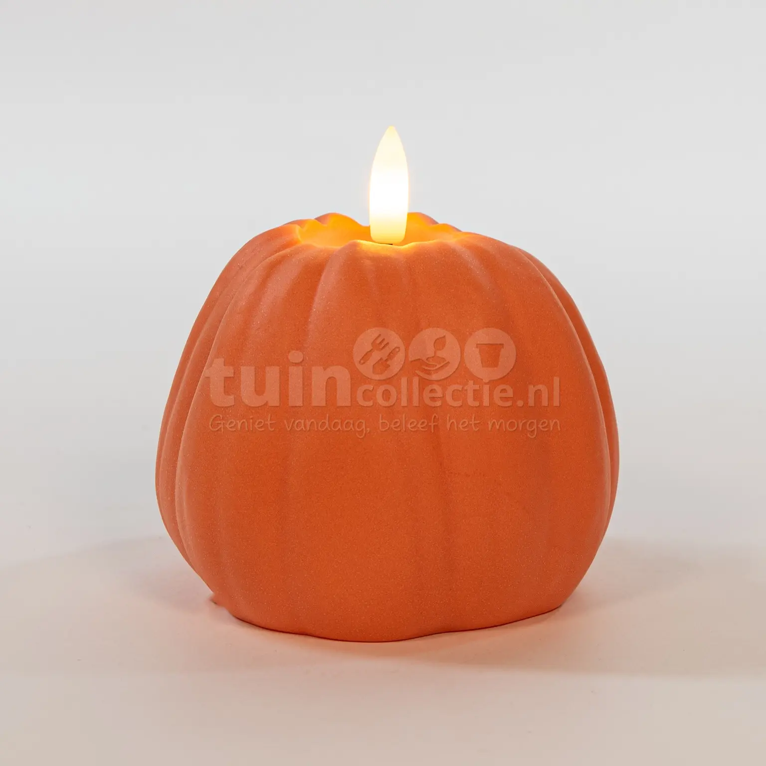 Haal de herfstsfeer in huis met deze bijzondere 3D pompoen LED kaars! De LED kaars is gemaakt van kunststof en heeft de vorm van een oranje pompoen. Dankzij het 3D vlammetje lijkt het net als echt flakkerend kaarslicht, maar dan veilig en duurzaam. De pompoen kaars is 8,5cm hoog met een diameter van 11cm. De verlichting werkt op 2 AA-batterijen en is in te stellen met de aan/uit knop of timerfunctie. Met de timerfunctie brandt de kaars 6 uur lang en gaat daarna voor 18 uur uit. De kaars gaat de volgende dag automatisch weer aan op het tijdstip waarop hij de eerste keer ingeschakeld is.