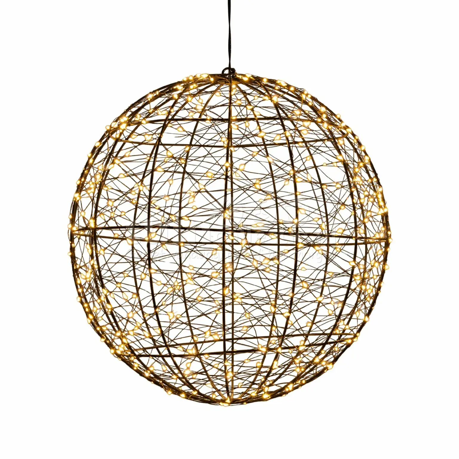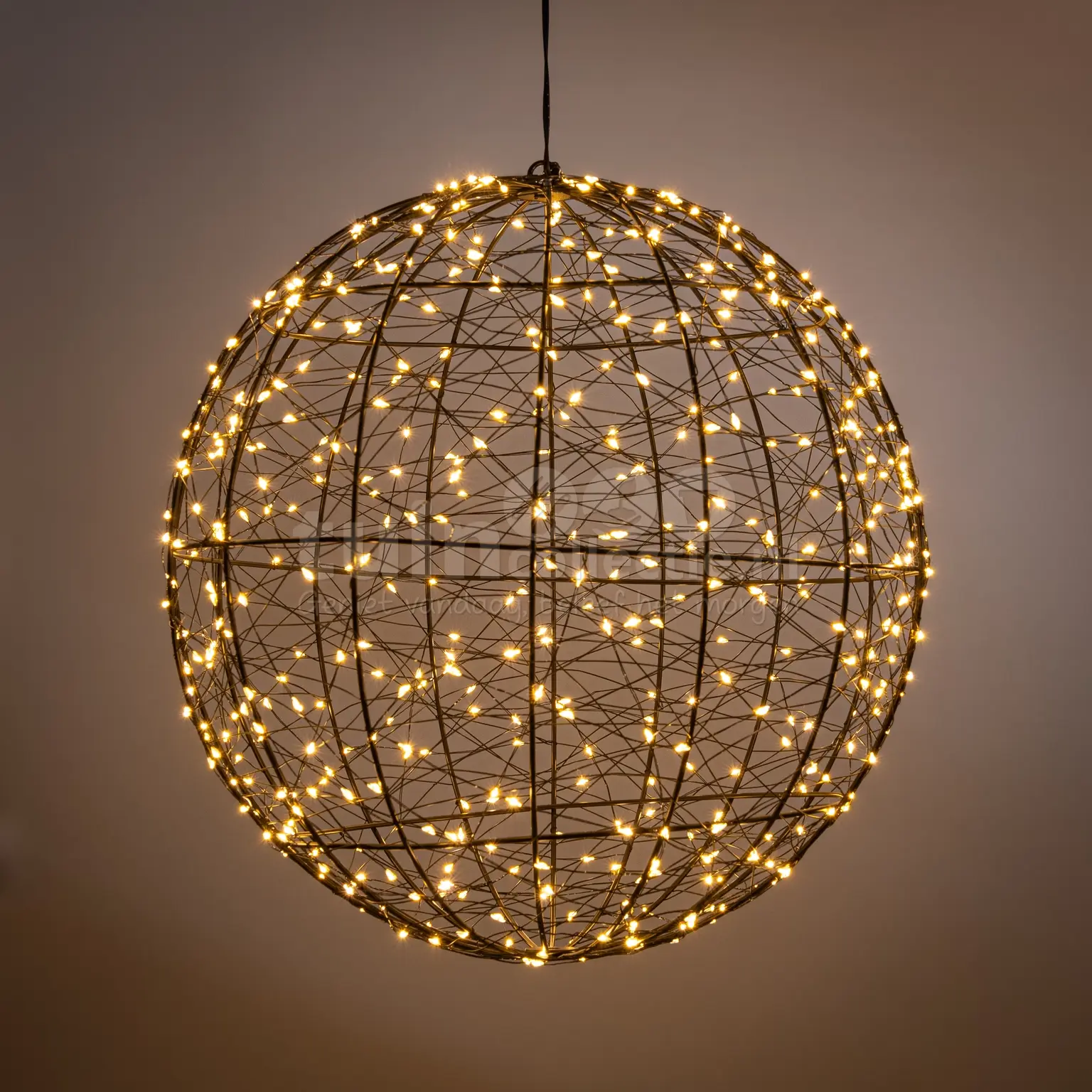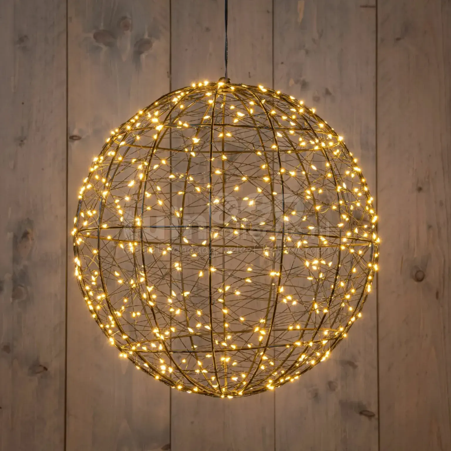 Geef jouw huis of tuin een magische kerstsfeer met deze lichtbol van Anna's Collection! De verlichte bol bestaat uit een zwart metalen frame met een diameter van 35cm. Hij is omwikkeld met een zwart snoer met 500 LED lampjes die klassiek warm licht geven. De verlichting werkt op een IP44 transformator (netstroom), geschikt voor binnen en buiten en heeft een aanloopsnoer van 5 meter. Daarnaast werkt de lichtbol met een aan/uit knop of de handige timerfunctie. Wanneer de timerfunctie ingeschakeld wordt, brandt de verlichting 8 uur lang en gaat daarna voor 16 uur uit. De verlichting gaat de volgende dag automatisch weer aan op het tijdstip waarop ze de eerste keer zijn ingeschakeld. Bevestig de bol met lampjes bijvoorbeeld aan de vlaggenstok, pergola, boom of in huis en geniet van een prachtige sfeerverlichting tijdens de feestdagen!