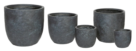 Bloempot Arizona Egg geeft een moderne sfeer aan de tuin of het terras door zijn stenen uitstraling. De ronde bloempot is gemaakt van fiberclay en heeft de grijze kleur grafiet. Fiberclay is een combinatie van klei met glasvezel, dat samen een sterk en weerbestendig geheel vormt. De Arizona bloempot is 51cm hoog met een diameter van 55cm en geschikt voor buitenshuis.