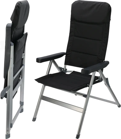 Comfortabel genieten op de camping of in de tuin doe je op deze Redcliffs Campingstoel. Door de 6 verschillende standen kun je voor elke gelegenheid de gewenste stand instellen. Zo kun je de rugleuning bijvoorbeeld rechtop zetten voor het diner of naar achteren om heerlijk, liggend van de zon te genieten. Deze tuinstoel bestaat uit een zilver aluminium frame en een polyester gevoerde (schuimvulling) zitting die zwart van kleur is. Door de gevoerde zitting, heeft deze campingstoel een comfortabele zit. Daarnaast is de tuinstoel volledig inklapbaar en licht van gewicht, waardoor hij ideaal is om mee te nemen naar de camping. De stoel heeft een lengte van 76cm, een breedte van 59cm en een hoogte van 118cm.