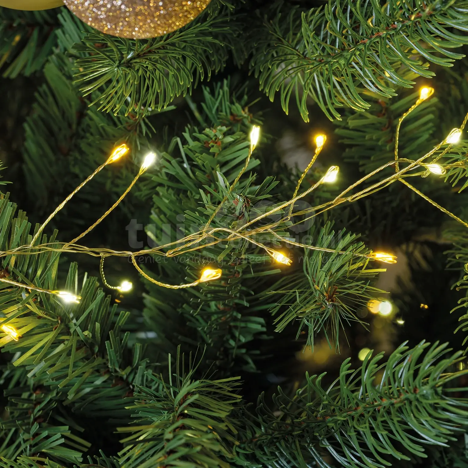 Deze Compact draadverlichting van Lumineo geeft een bijzondere sfeer aan jouw kerstboompje of kerstdecoratie. De kerstverlichting bestaat uit een gouddraad van 12 meter lang met daaraan 960 micro LED lampjes afwisselend in de lichtkleuren warm wit en klassiek warm. De totale lengte van het snoer is 17 meter, inclusief 5 meter aanloopsnoer en adapter. Dankzij de IP44 adapter zijn deze lampjes zowel binnen- als buitenshuis te gebruiken. Daarnaast is deze kerstverlichting voorzien van een timerfunctie en 8 twinkelende lichtfuncties. Middels een knopje op de adapter is eenvoudig te switchen tussen de verschillende functies. Met de timerfunctie brandt de verlichting 8 uur lang en gaat daarna automatisch voor 16 uur uit. De lampjes gaan de volgende dag automatisch weer aan op het tijdstip waarop ze de eerste keer zijn ingeschakeld. De meest sfeervolle verlichtingsset voor kerstmis!