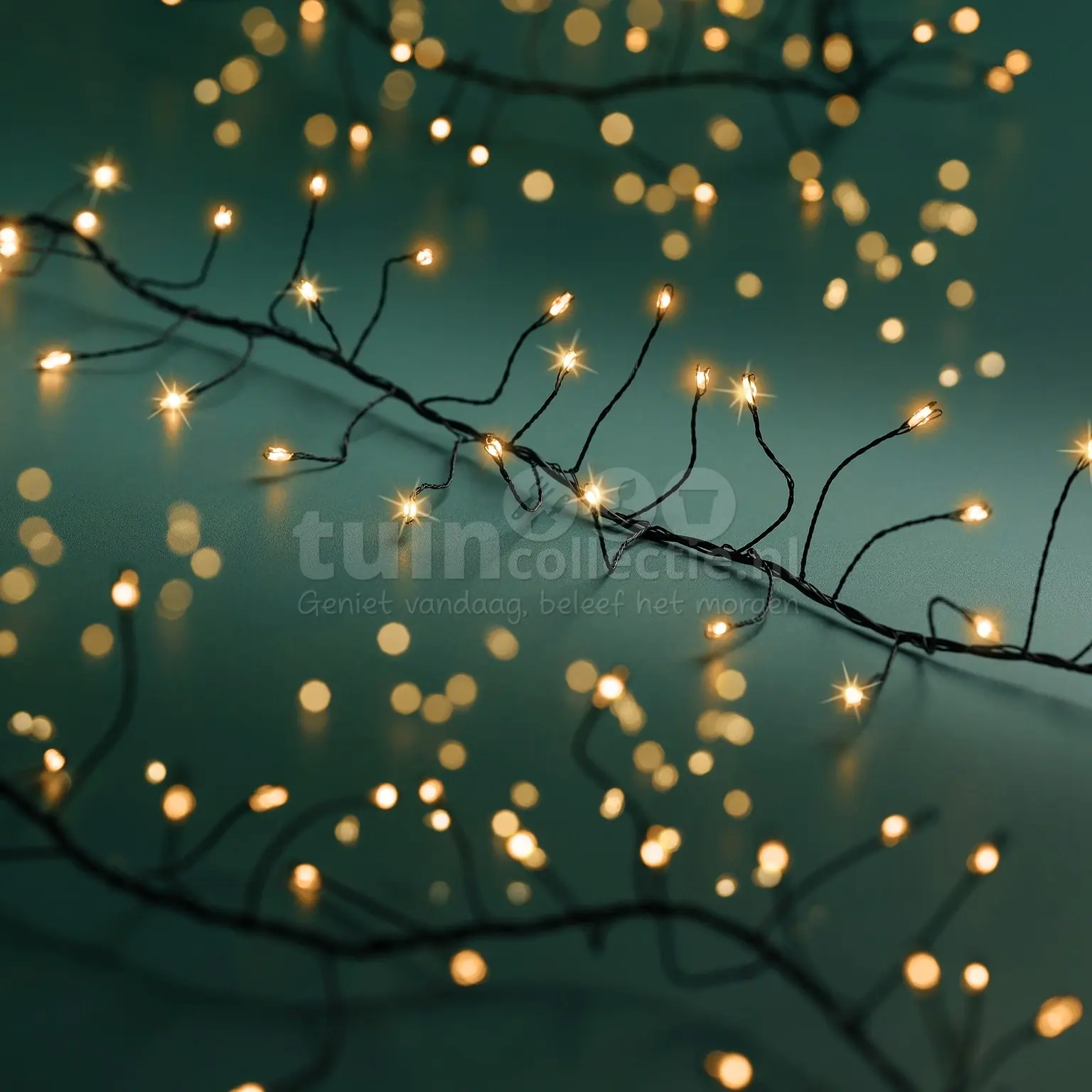Deze Compact draadverlichting van Lumineo geeft een bijzondere sfeer aan jouw kerstboompje of kerstdecoratie. De kerstverlichting bestaat uit een zwarte draad van 6 meter lang met daaraan 480 micro LED lampjes met de lichtkleur klassiek warm. De totale lengte van het snoer is 11 meter, inclusief 5 meter aanloopsnoer en adapter. Dankzij de IP44 adapter zijn deze lampjes zowel binnen- als buitenshuis te gebruiken. Daarnaast is deze kerstverlichting voorzien van een timerfunctie en 8 twinkelende lichtfuncties. Middels een knopje op de adapter is eenvoudig te switchen tussen de verschillende functies. Met de timerfunctie brandt de verlichting 8 uur lang en gaat daarna automatisch voor 16 uur uit. De lampjes gaan de volgende dag automatisch weer aan op het tijdstip waarop ze de eerste keer zijn ingeschakeld. De meest sfeervolle verlichtingsset voor kerstmis!