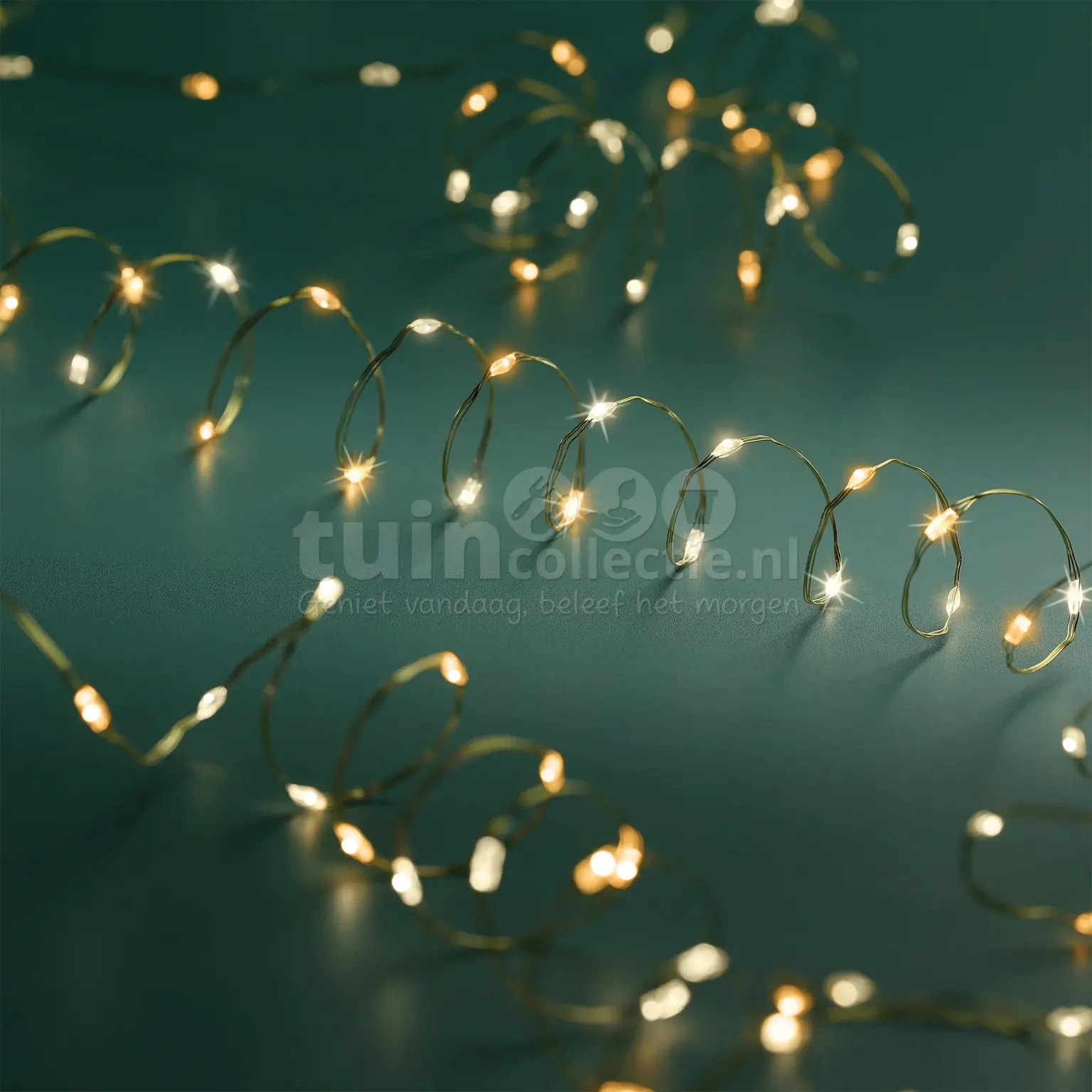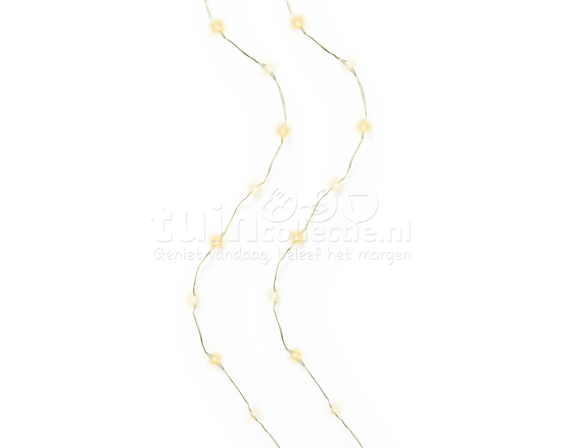 Met de Lumineo gouddraadverlichting geef je in een handomdraai sfeer aan kerstdecoratie of aan een kleine kerstboom in huis of tuin. Deze zeer dunne gouddraad is 6 meter lang en voorzien van 120 micro LED lampjes met zowel warm wit als klassiek warm licht. De draad is makkelijk te buigen en is goudkleurig. De kerstverlichting werkt op stroom middels een IP44 adapter, die geschikt is voor binnen en buiten. Dankzij het 5 meter lange aanloopsnoer is er vrijwel altijd een stopcontact in de buurt. Verder is deze draadverlichting voorzien van een timerfunctie en heeft hij 8 verschillende lichtfuncties, voor elke gewenste sfeer. Wanneer de timerfunctie ingeschakeld staat, brandt de verlichting 8 uur lang en gaat daarna voor 16 uur uit. De verlichting gaat de volgende dag automatisch weer aan op het tijdstip waarop ze de eerste keer zijn ingeschakeld.