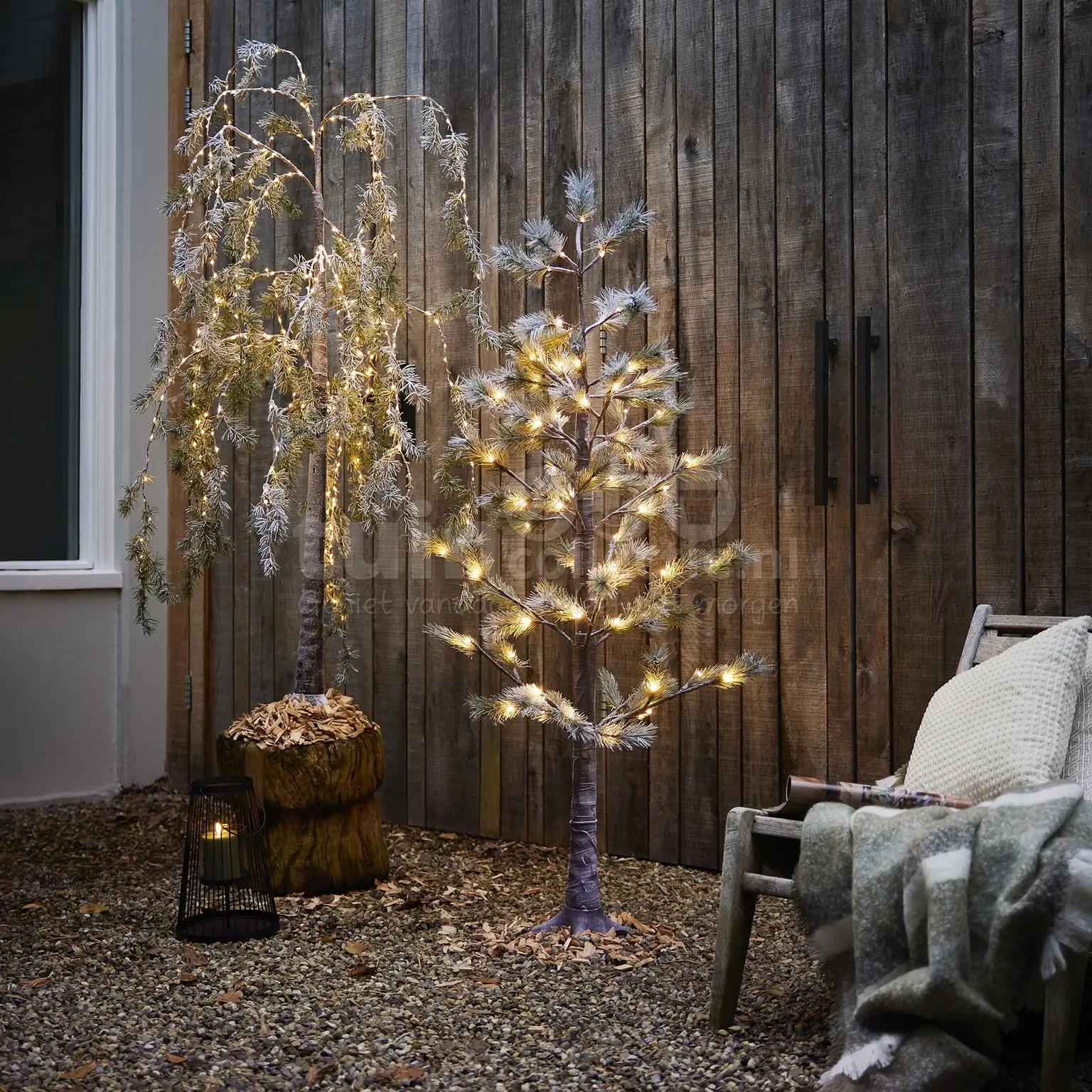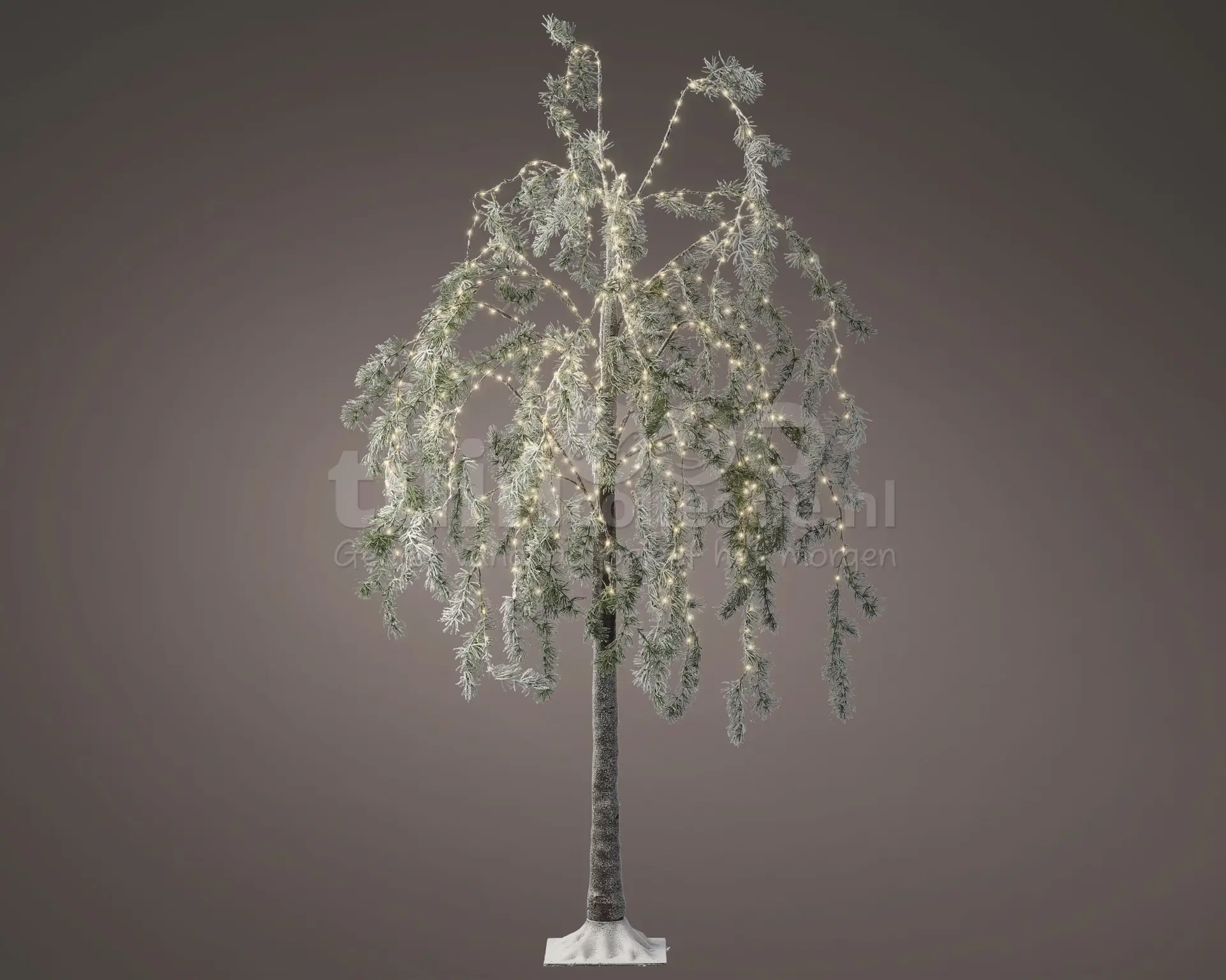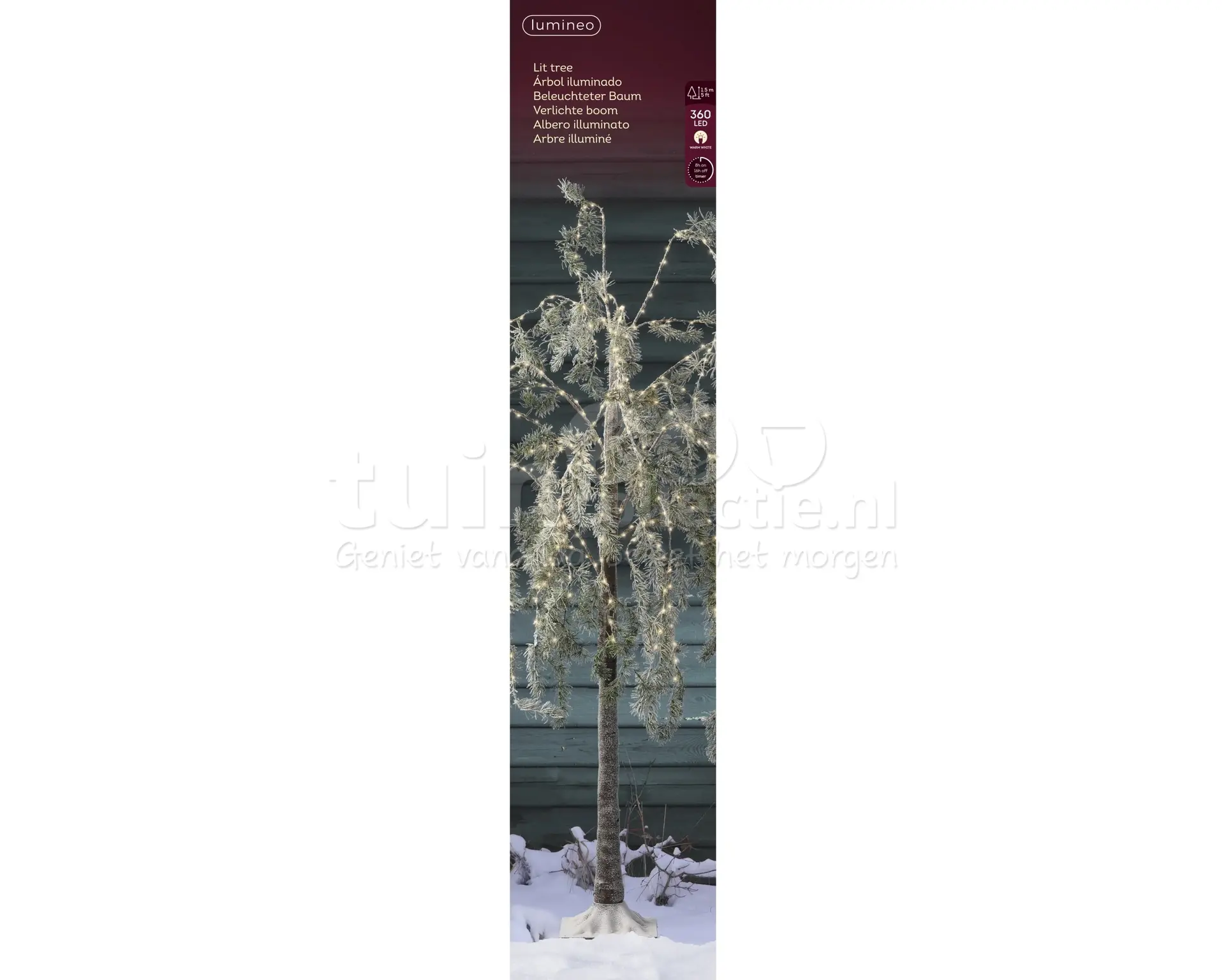 Met deze verlichte wilgenboom van Lumineo breng je veel sfeer in huis of tuin! De kunst wilgenboom is 150cm hoog en bestaat uit een stevige kunststof stam die bruin van kleur is. De takken zijn gemaakt van een buigbare draad met daaraan de pvc blaadjes. De gehele kunstboom is voorzien van een laagje sneeuw, waardoor hij een winterse uitstraling heeft. Verder zijn de takken van de wilgenboom omwikkeld met draadverlichting waaraan 360 micro LED lampjes met warm wit licht zitten. Deze verlichting is tevens voorzien van een handige timerfunctie. Wanneer de timerfunctie is ingeschakeld brandt de verlichting 8 uur lang en gaat daarna automatisch voor 16 uur uit. De lampjes gaan de volgende dag automatisch weer aan op het tijdstip waarop ze de eerste keer zijn ingeschakeld. De verlichting werkt op netstroom met een IP44 adapter en is zowel geschikt voor binnen- als buitenshuis. Zet de boom eenvoudig in elkaar, sluit de verlichting aan en geniet van een sfeervolle winterse wilgenboom waar je maar wilt!