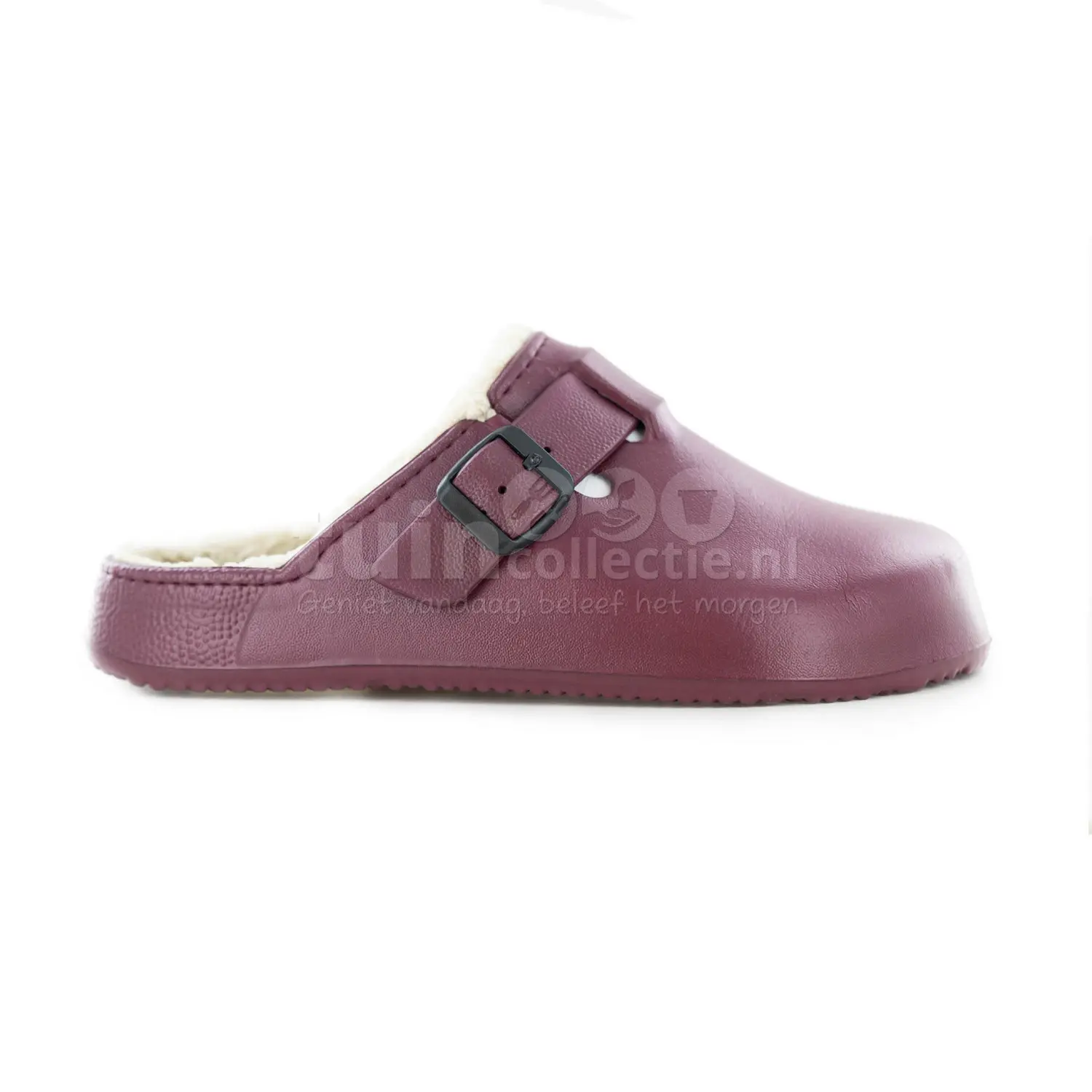 De Stockholm klompen van Blackfox bieden optimaal comfort voor binnen- en buitenshuis als de koudere dagen aantreden. De klompen zijn gemaakt uit één stuk synthetisch rubber (EVA-based) en zijn hierdoor erg licht in gewicht. Ook de zachte beige polyesterbont voering zorg voor comfort en houden je voeten heerlijk warm. Perfect als je in en rondom het huis loopt. Middels het riempje bovenop de klomp maak je ze perfect passend naar je voet. Verder zijn deze Stockholm klompen pruimen rood van kleur en hebben maat 38/39.