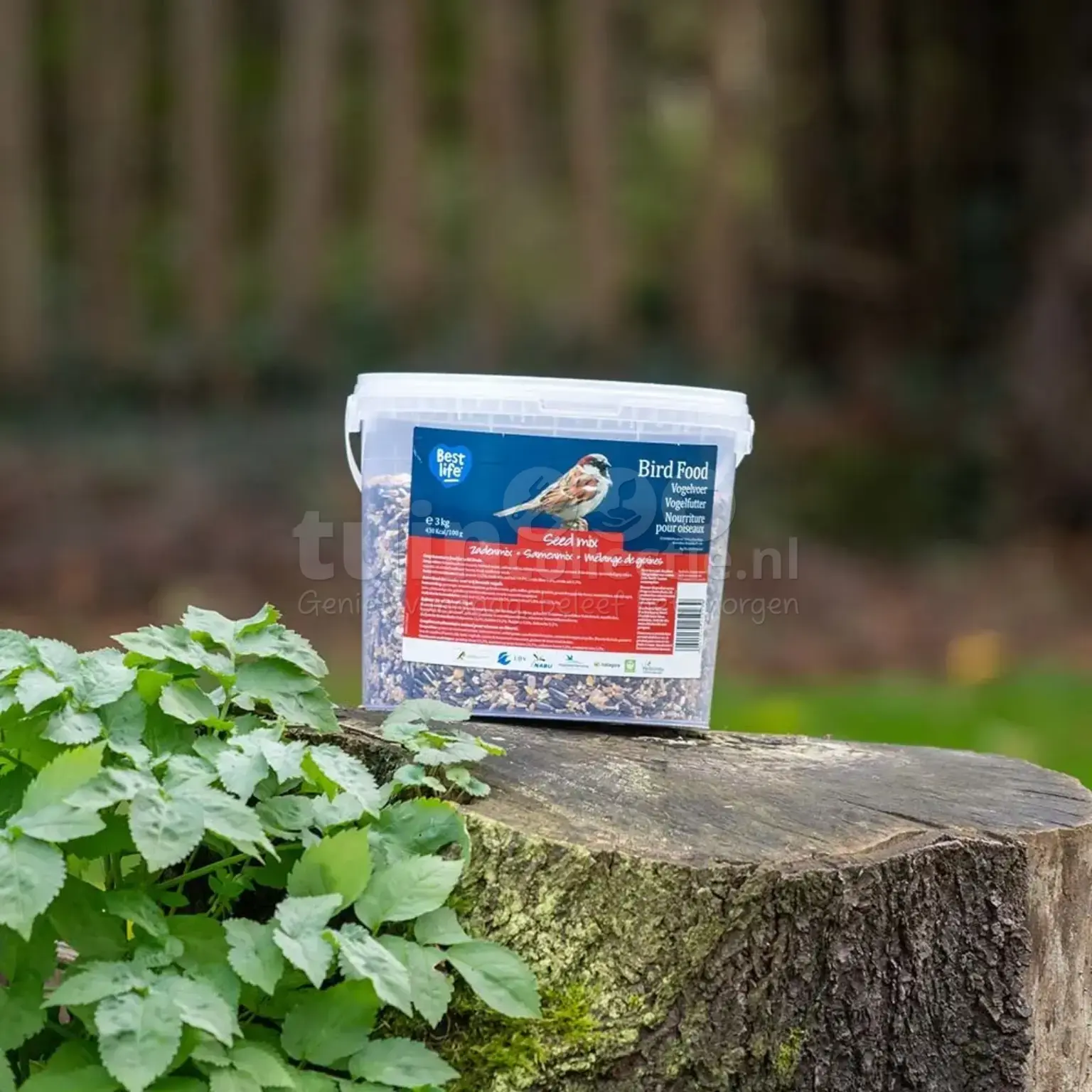 Verwen de tuinvogels met deze heerlijke zadenmix van Vogelbescherming Nederland! De mix zit vol met vogels geliefde ingrediënten zoals zonnebloempitten en gehakte pinda’s. Alle ingrediënten zijn van hoge kwaliteit en zorgvuldig samengesteld met extra aandacht voor het oliegehalte. Deze calorierijke mix is onweerstaanbaar voor mussen, mezen, roodborstjes en vinken. De emmer bevat 3kg zaden en is ideaal om de vogels in jouw tuin het hele jaar door van lekker en voedzaam voer te voorzien!