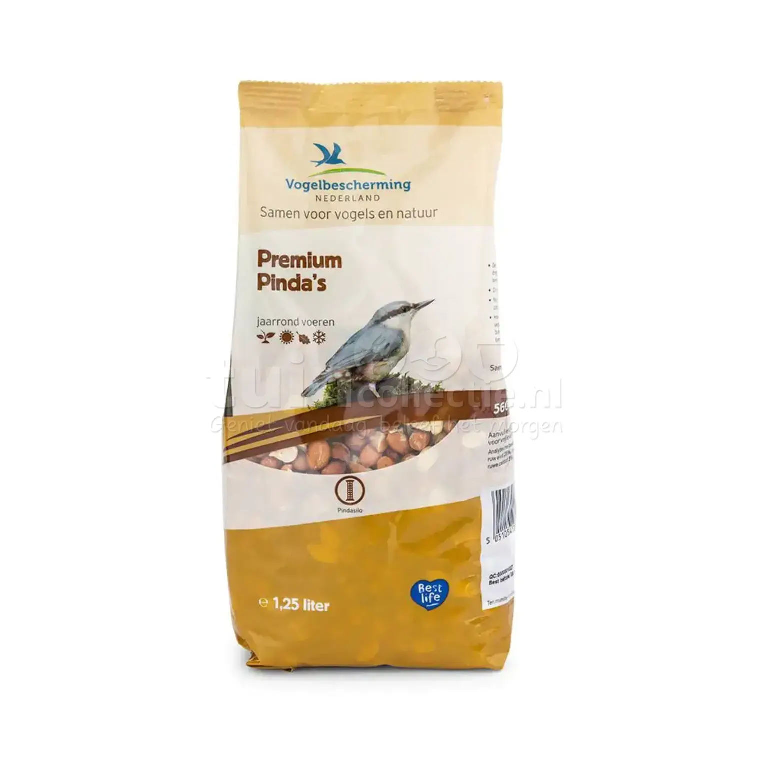 Lok vogels naar je tuin met deze hoogwaardige pinda’s van Vogelbescherming Nederland! De zachte, olierijke pinda’s zijn aflatoxinevrij en hebben een hoog vet- en eiwitgehalte, waardoor ze extra voedzaam zijn voor de vogels. Niet alleen pimpelmezen, koolmezen en groenlingen genieten hiervan, ook spechten, mussen, sijsjes en boomklevers zijn dol op dit energierijke voer. De pinda’s zijn het hele jaar door te voeren, maar gebruik altijd een speciale pindasilo. Vogelbescherming Nederland raadt het voeren van pinda’s in netjes af, omdat vogels hierin verstrikt kunnen raken en de netjes lang in het milieu blijven liggen. Uit een pindasilo kunnen de vogels veilig pinda’s eten en pikken ze deze zelf in kleine stukjes. Worden de pinda’s nat door de regen, dan drogen ze snel weer op. Een zak bevat 1,25 liter premium pinda’s.