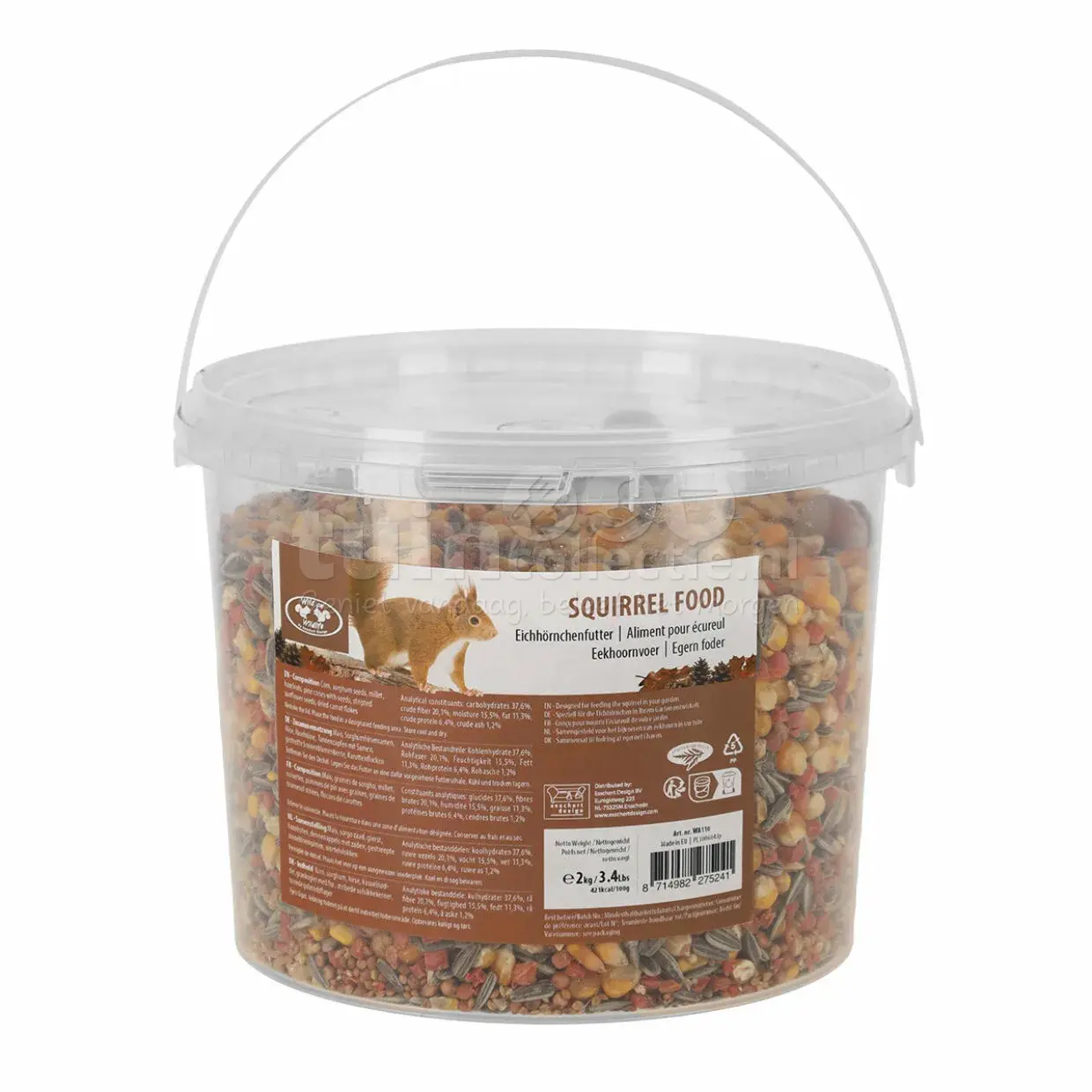 Help de eekhoorns in je tuin met dit voedzame eekhoornvoer. Deze mix is speciaal samengesteld als aanvulling op hun natuurlijke voeding en zorgt ervoor dat ze het hele jaar door voldoende energie hebben. Dit eekhoornvoer is een uitgebalanceerde voermix voor wilde eekhoorns als aanvulling op hun natuurlijke voeding. De mix kan het hele jaar door gebruikt worden en de eekhoorns kunnen het direct opeten. Het voer wordt geleverd in een handige emmer van 2kg.