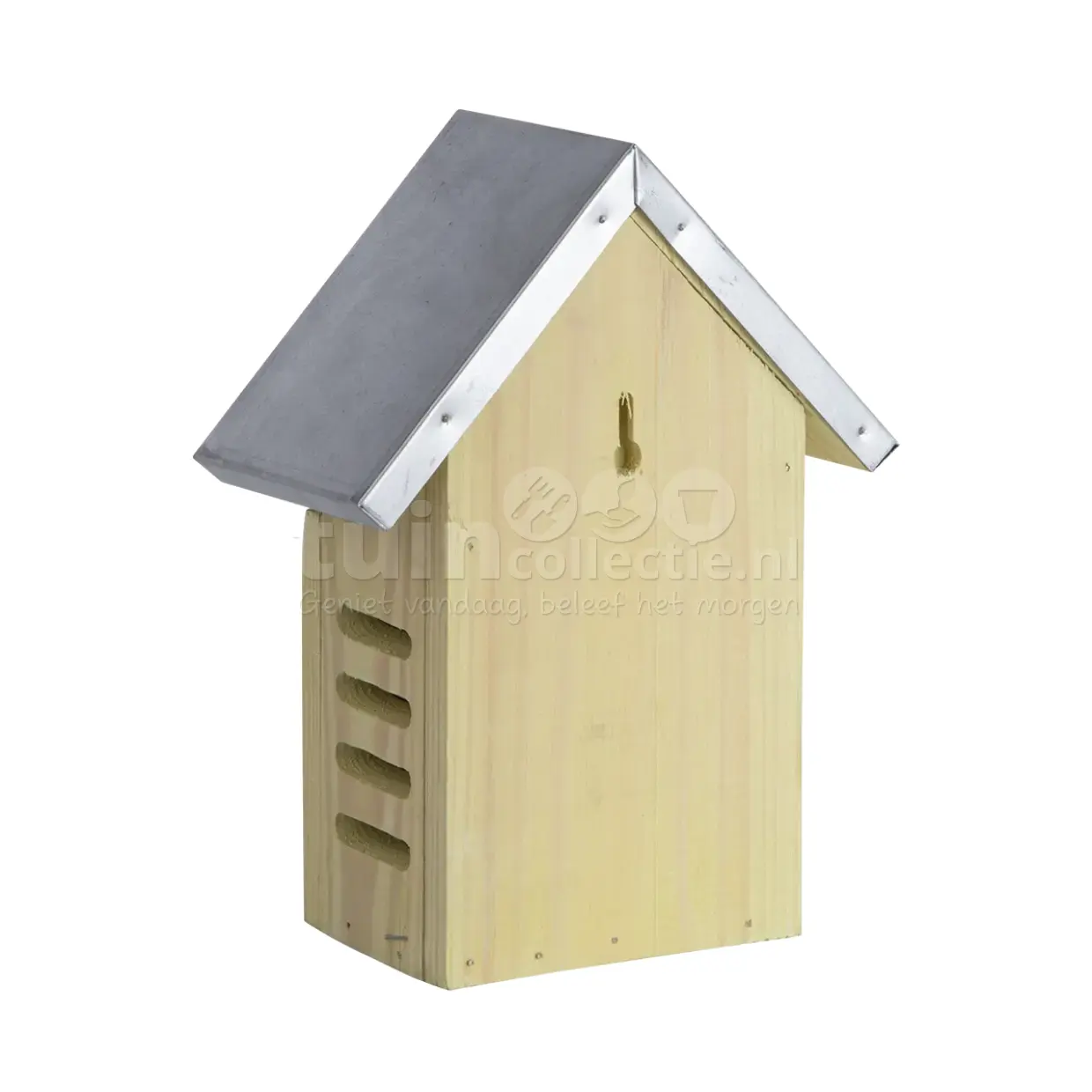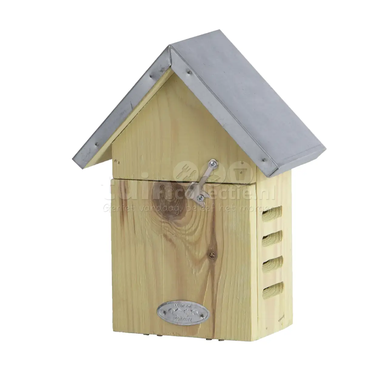 Lieveheersbeestjes zijn erg nuttige diertjes in de tuin. Een volwassen beestje eet namelijk wel 100 bladluizen per dag! Een goede reden dus om ze naar je tuin te lokken. Met dit lieveheersbeestkastje geef je ze een fijne plek om te schuilen en te overwinteren. Het huisje is gemaakt van 100% FSC-gecertificeerd vurenhout en heeft een stevig zinken dakje. Door de vier horizontale openingen aan weerszijden kunnen lieveheersbeestjes makkelijk aanvliegen en biedt het kastje beschutting en onderdak. Het ontwerp houdt bovendien concurrenten en roofdiertjes buiten. Het lieveheersbeestkastje is 23,1cm hoog, 18cm lang en 10,1cm breed. Om het de lieveheersbeestjes extra naar hun zin te maken, kun je enkele losse bladeren of een rolletje golfkarton in het huisje stoppen. Hang het kastje eenvoudig op aan een muur of schutting en geniet van een natuurlijke, gezonde tuin!