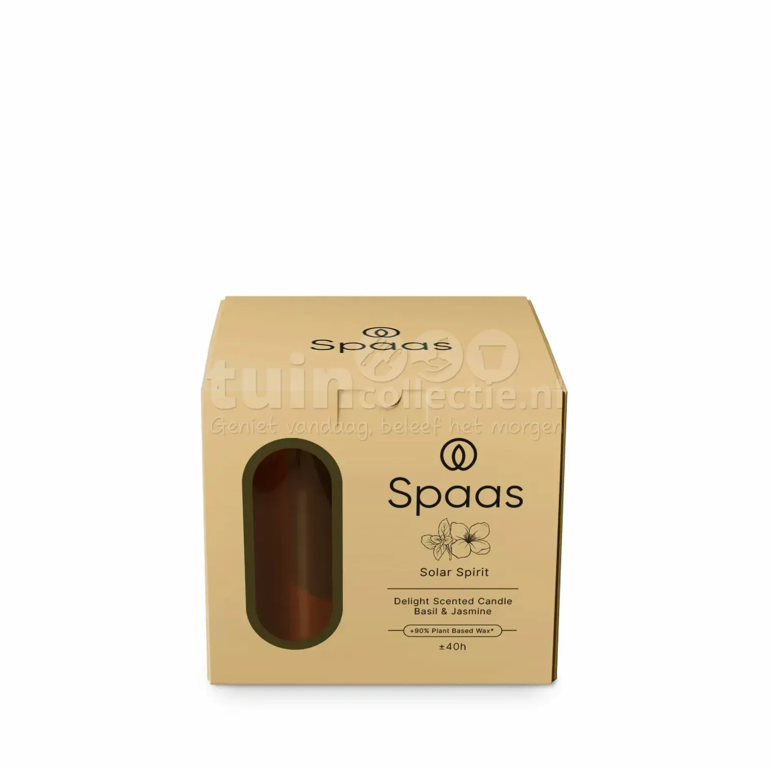 Met de Spaas Delight geurkaarsen uit de Iconic Collection breng je naast een warme en gezellige sfeer ook een modern tintje aan je interieur. De kaars zit in een stijlvolle, transparante donkerbruine glazen houder en is direct klaar om in de woonkamer, badkamer of het toilet te plaatsen. De geurkaars heeft de geur Solar Spirit en verspreidt een heerlijke geur van een vers boeket gemixt met verse basilicum voor een weelderig effect. Verder heeft het glas van de kaars een hoogte van 10cm en een diameter van 11cm. De kaars bevat meer dan 90% plantaardige was en heeft een brandduur van ca. 40 uur. Is je kaars volledig opgebrand? Dan kun je deze eenvoudig navullen met de Spaas Delight geurkaars navulling, zodat je keer op keer kunt blijven genieten van de heerlijke geur. Combineer de Delight geurkaars met de Iconic geurstokjes voor een ultieme geurbeleving!