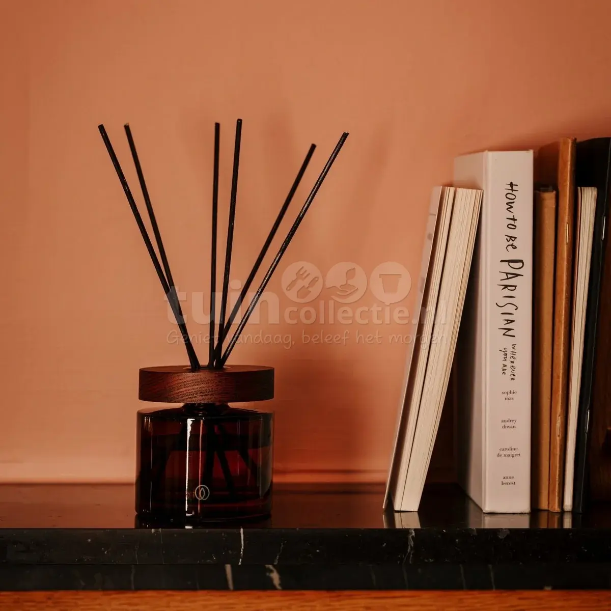 Met deze geurstokjes uit de Iconic Collection van Spaas verspreid je de lekkerste geuren in huis. De geurstokjeshouder is gemaakt van warm donkerbruin glas en heeft aan de bovenzijde een houten ring, wat hem een luxe uitstraling geeft. De reed diffuser is 24cm hoog en heeft een diameter van 7,5cm. Deze set wordt geleverd met 150ml geurolie en zwarte geurstokjes. Plaats de stokjes in het glas en geniet van een heerlijke, langdurige geurverspreiding door je huis. Deze geurstokjes hebben de geur Beaming Bliss; een heerlijk ruikende mix van zwarte bessen en rozengeur die in elkaar overlopen om een verleidelijk en elegant parfum te creëren. Het is een bloemige, fruitige geur met geurnoten van zwarte bes, pompelmoes, bergamot, rabarber, roos, jasmijn, lychee, framboos, cederhout en vanille. Dankzij het navulconcept kun je blijven genieten van de heerlijke geur. Daarnaast zijn deze Iconic geurstokjes een perfecte aanvulling op de Delight geurkaarsen van Spaas.