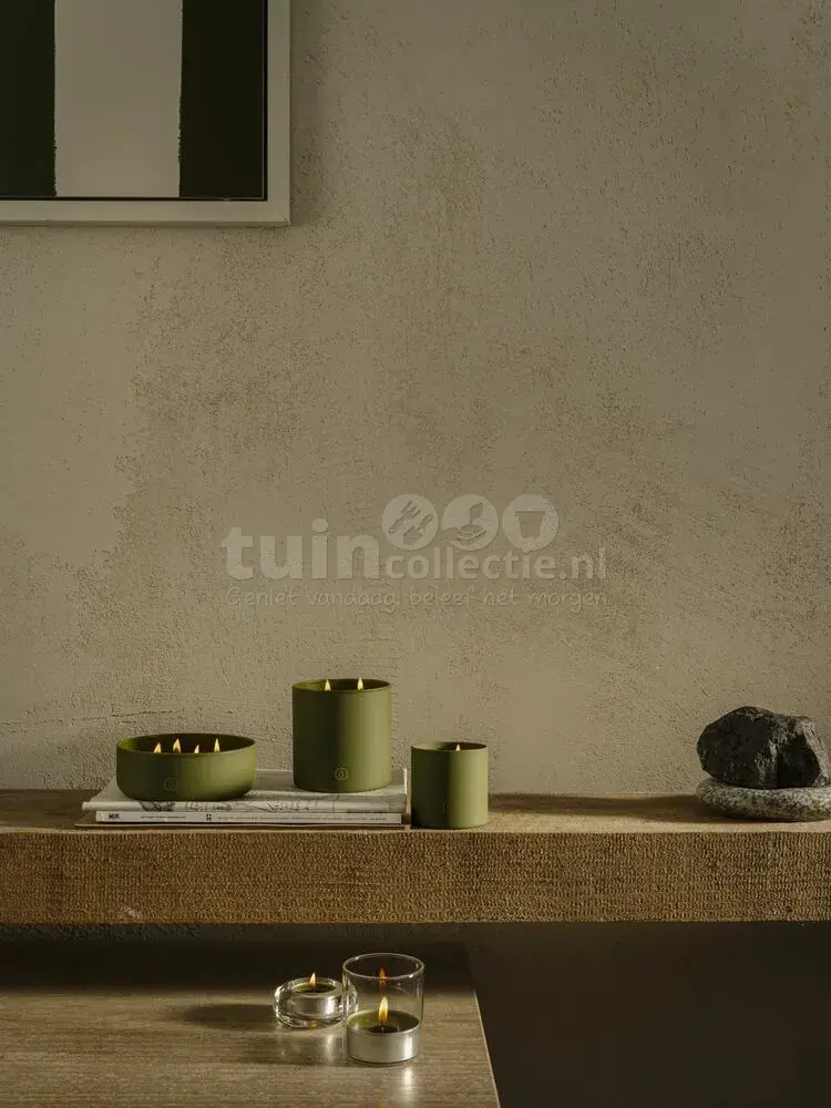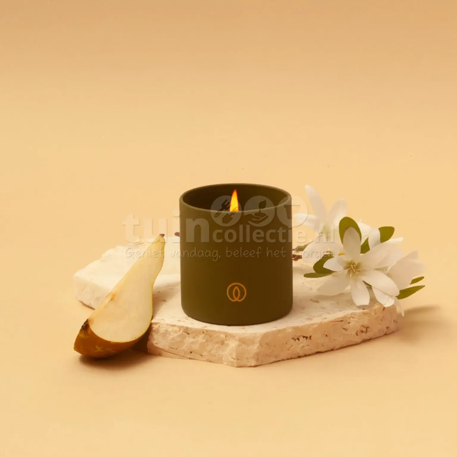 Met de Spaas Glow Geurkaarsen breng je naast een warme en gezellige sfeer ook een modern tintje aan je interieur. De kaars zit in een glas met een olijfgroene matte afwerking en is meteen klaar om in de woonkamer, badkamer of het toilet te plaatsen. De geurkaars heeft de geur Romantic Reflections en verspreidt daarmee een zachte geur van peer en jasmijn. Verder heeft het glas van de geurkaars een hoogte van 7cm en een diameter van 7cm. De geurkaars bevat +70% plantaardige was en heeft een brandduur van ca. 35 uur.