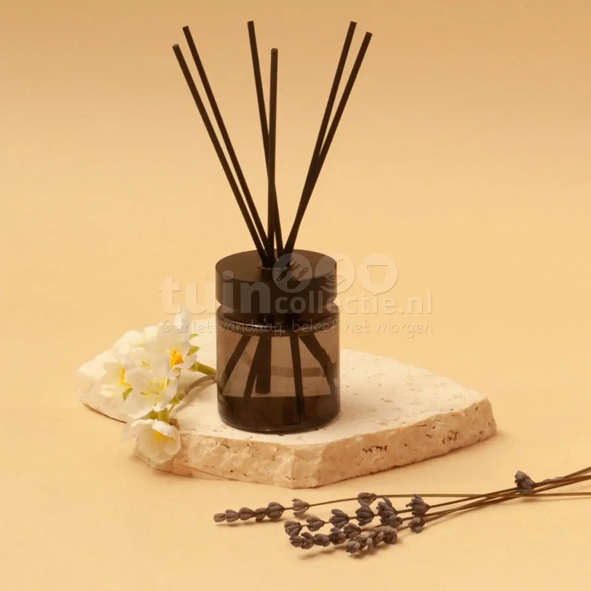 Met deze geurstokjes uit de Essential Collection van Spaas verspreid je de lekkerste geuren in huis. De geurstokjeshouder is gemaakt van warm donkerbruin glas en heeft aan de bovenzijde een houten ring, wat hem een luxe uitstraling geeft. De reed diffuser is 20cm hoog en heeft een diameter van 7,5cm. Deze set wordt geleverd met 80ml geurolie en zwarte geurstokjes. Plaats de stokjes in het glas en geniet van een heerlijke, langdurige geurverspreiding door je huis. Deze geurstokjes hebben de geur Soft Sunrise; een heerlijke geur van sinaasappelbloesem en lavendel. Met zachte, frisse noten en een hint van bloemen creëert het een ontspannen en serene sfeer. Dankzij het navulconcept kun je blijven genieten van de heerlijke geur. Daarnaast zijn deze geurstokjes een perfecte aanvulling op de Essential geurkaarsen van Spaas.