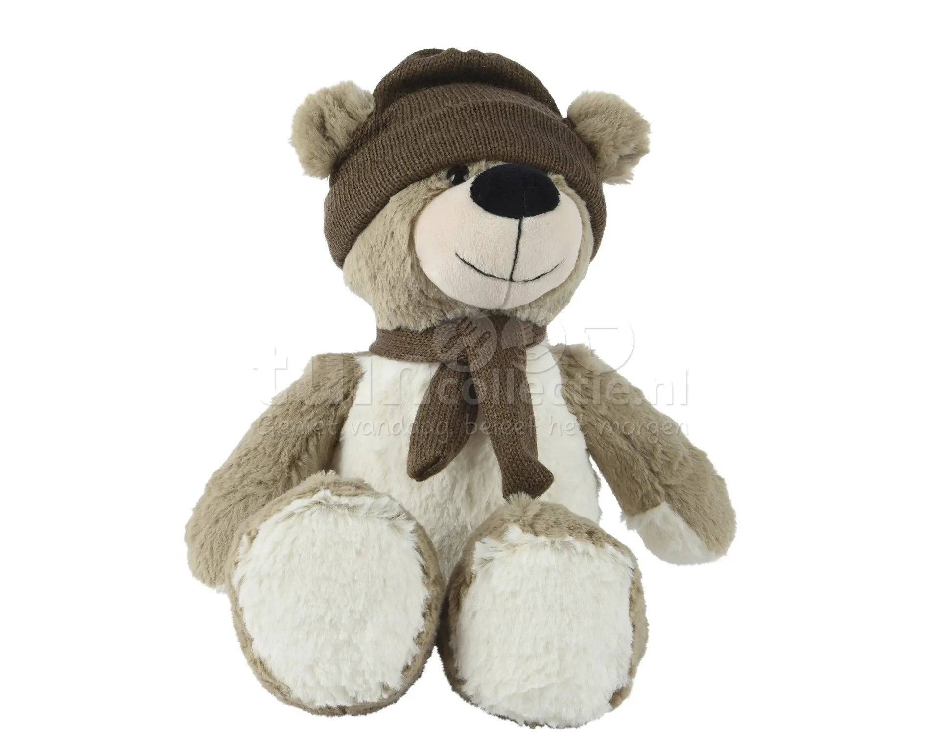 Deze pluche beren knuffel is erg leuk voor de kids tijdens de feestdagen! De beer is heerlijk zacht en is taupekleurig, bruin en wit. Hij heeft een muts en een sjaal om en geeft daarmee een winterse uitstraling. De pluche beren knuffel is ca. 25x24x25cm groot.