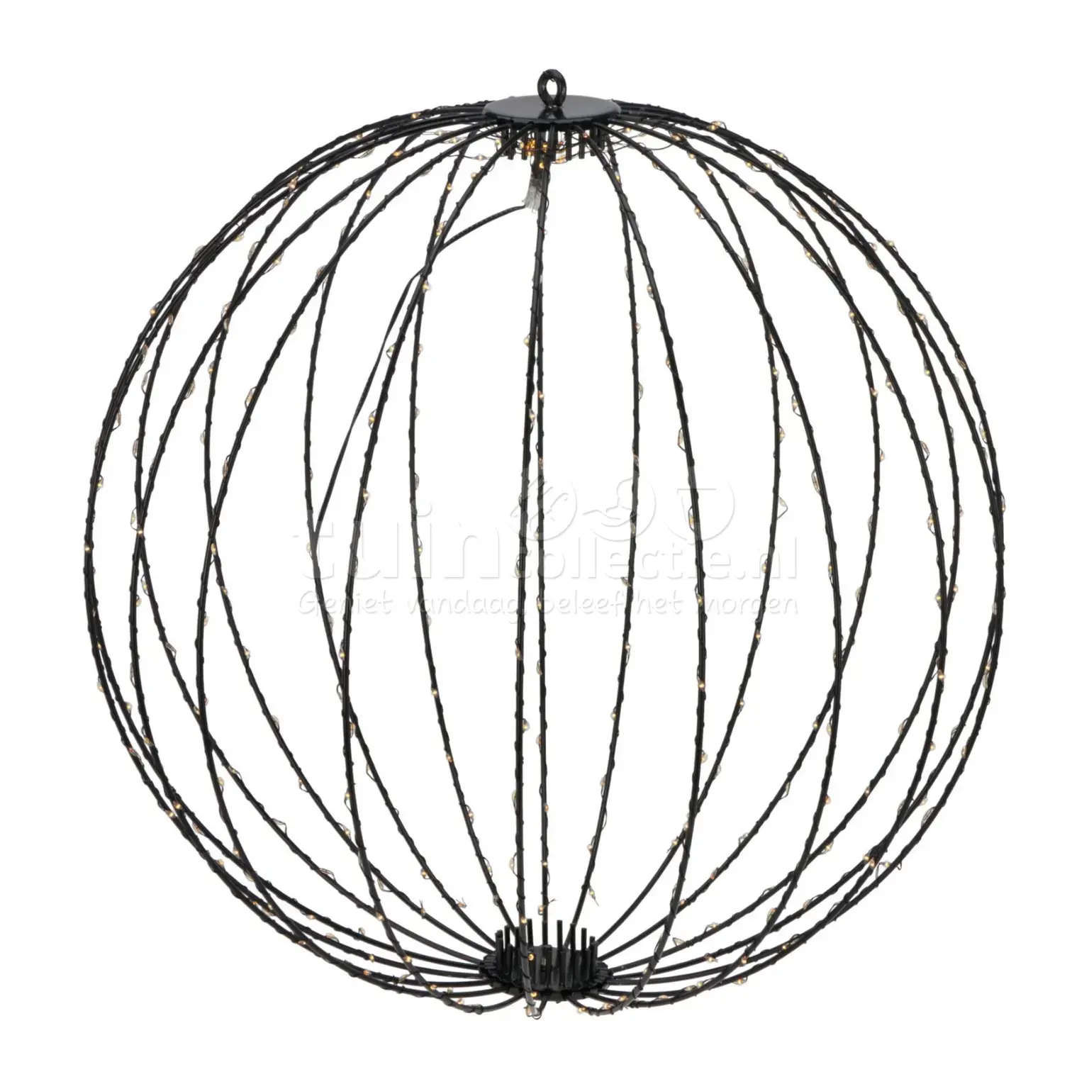 Versier je huis of tuin tijdens de feestdagen met deze prachtige verlichte bol! Deze grote lichtbol bestaat uit een rond zwart frame met een diameter van 50cm en is voorzien van 320 LED lampjes met extra warm wit licht. De verlichting werkt op stroom en heeft een aanloopsnoer van 5 meter, waardoor er al gauw een stopcontact in de buurt is. Daarnaast werkt de lichtbol met een aan/uit-knop of de timerfunctie. Wanneer de timerfunctie is ingeschakeld, brandt de verlichting 6 uur lang en gaat daarna voor 18 uur uit. De verlichting gaat de volgende dag automatisch weer aan op het tijdstip waarop ze de eerste keer is ingeschakeld. Bevestig de bol met lampjes aan de vlaggenstok of bij de voordeur en geniet in de avonduren van een mooi verlicht huis!