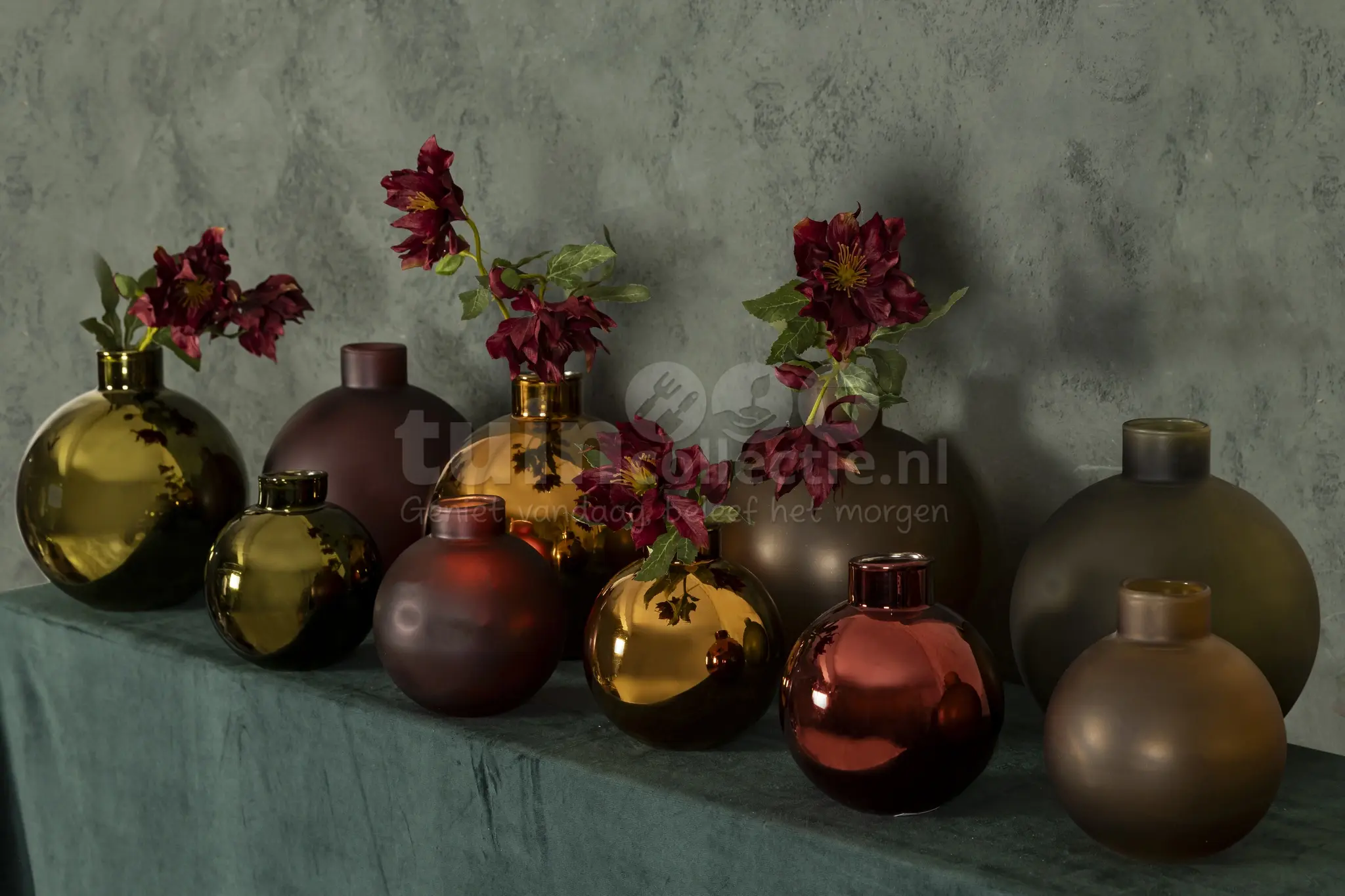 Een leuk vaasje met een aantal (zijden)bloemen of decoratietakken brengt direct meer kleur en sfeer in huis! Vaas Elian van PTMD is daar perfect voor. De vaas is gemaakt van glas en heeft een mooie groene kleur. Daarbij is hij voorzien van een metallic afwerking, wat hem een chique uitstraling geeft. Vaas Elian heeft een hoogte van 10cm en op het breedste punt een diameter van 10cm. Plaats een aantal kunsttakken in dit mooie, kleine vaasje, zet hem op een leuk plekje in huis en geniet van zijn sfeervolle uitstraling!
