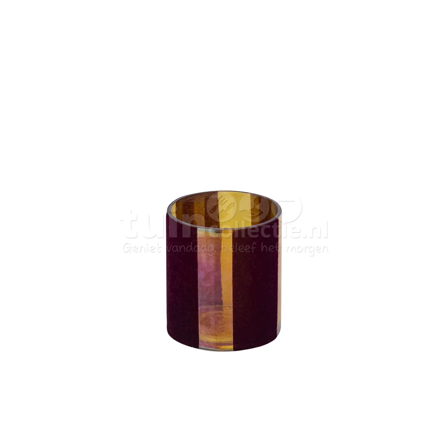 Kaarsjes maken het in huis direct gezelliger, en dat kan natuurlijk niet zonder een mooie waxinelichthouder. De waxinelichthouder Jeyden van PTMD brengt een warme en feestelijke sfeer in huis. Hij is gemaakt van glas met een gouden kleur en heeft een stijlvol gestreept patroon. De brede strepen zijn voorzien van glitters en hebben een mooie bordeauxrode kleur. De houder is 9cm hoog en heeft een diameter van 8cm. Perfect ter decoratie in het najaar of als kerstdecoratie te gebruiken. Plaats er een waxinelichtje in en geniet van sfeervol kaarslicht!