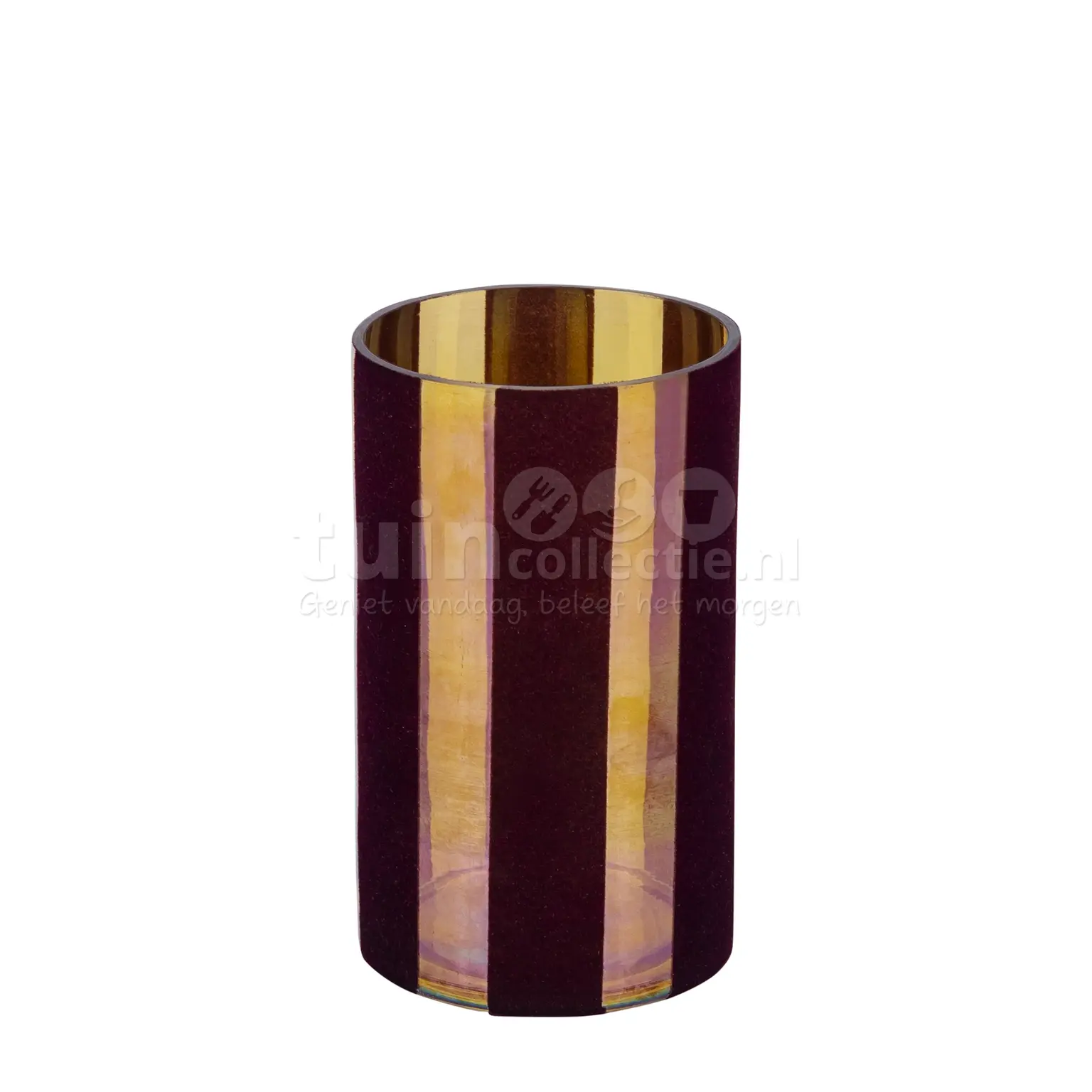 Kaarsen maken het in huis direct gezelliger en dat kan natuurlijk niet zonder een mooie waxinelichthouder. De waxinelichthouder Jeyden van PTMD brengt een warme en feestelijke sfeer in huis. Hij is gemaakt van glas met een gouden kleur en heeft een stijlvol gestreept patroon. De brede strepen zijn voorzien van glitters en hebben een mooie bordeauxrode kleur. De houder is 20cm hoog en heeft een diameter van 13cm. Perfect ter decoratie in het najaar of de winter. Plaats er een waxinelichtje in en geniet van sfeervol kaarslicht!
