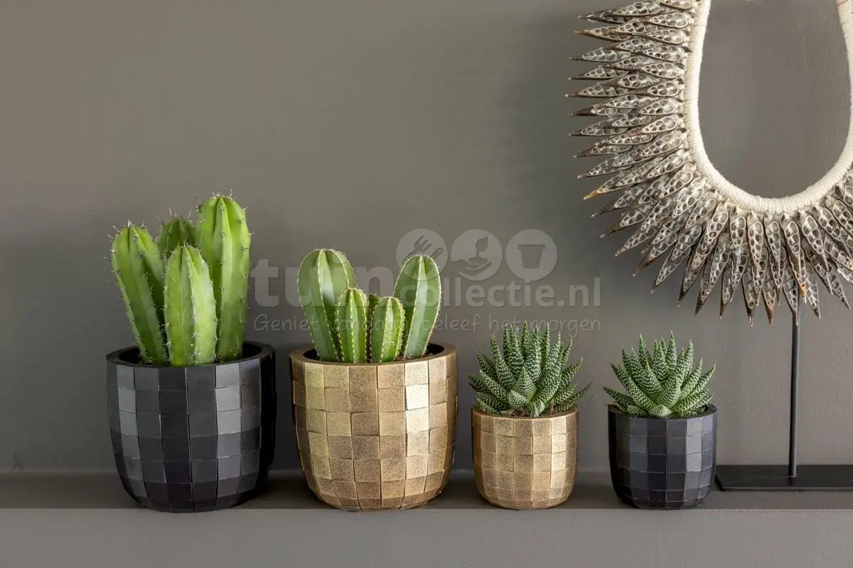 Breng een moderne sfeer aan in huis met deze bloempot Blocks van Capi! Deze pot geeft je interieur een uniek tintje door het zwarte, opvallende geblokte ontwerp. De pot is gemaakt van kunststof en daardoor stevig én licht van gewicht. De bloempot is geschikt voor gebruik binnenshuis en heeft daarom geen afwateringsgat. Omdat de pot niet 100% waterdicht is, raden we aan om een plastic inzethoes of zak te gebruiken om lekken te voorkomen. Bloempot Blocks heeft een diameter van 9cm en een hoogte van 8cm.