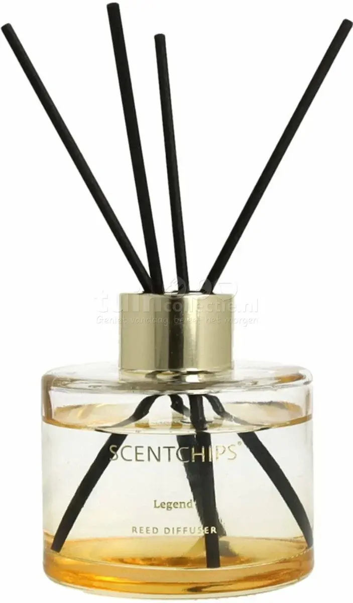 Deze geurstokjeshouder van Scentchips zorgen voor een ultieme geurbeleving in huis! De geurstokjeshouder is gemaakt van glas in een mooie gele kleur en is aan de bovenzijde voorzien van een gouden ring, wat de houder een luxe uitstraling geeft. De reed diffuser is 8cm hoog en heeft een diameter van 7cm. Deze set wordt geleverd met 100ml geurolie en 7 zwarte geurstokjes. Plaats de stokjes in het cilindervormige glas en geniet van een heerlijke, langdurige geurverspreiding door je hele huis. Draai de stokjes regelmatig om voor een frisse, intensere geur. Deze geurstokjes hebben de geur Legend - Sakura; een frisse, verfijnde geur waarin sprankelende citrus en zachte appel samenkomen met de warme, kruidige tonen van kardemom en amber. Het resultaat is een elegante en krachtige geur die je huis vult met een kalme, luxe sfeer. Ook leuk om deze Scentchips geurstokjes cadeau te geven!