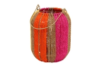 De Countryfield Lantaarn Milan geeft in een handomdraai kleur aan jouw interieur of terras! Deze lantaarn bestaat uit een metalen frame dat bespannen is met touw in vier kleuren; bruin, roze, geel en oranje. Deze kleurencombinatie zorgt voor een zomers gevoel. In de lantaarn staat een kaarsglas, waar eenvoudig een waxinelichtje of kleine stompkaars in te plaatsen is en je de hele avond geniet van sfeervol kaarslicht. Met het metalen hengsel kun je de lantaarn gemakkelijk verplaatsen of zelfs ophangen. Lantaarn Milan is 24cm hoog met een diameter van 18cm.