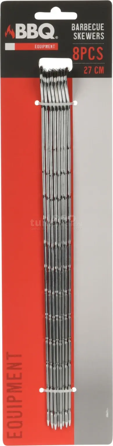 Ben jij een echte grill guru? Dan lust je vast ook graag vlees spiezen of groenten spiezen! Deze sterke BBQ spiezen horen dan tussen jouw barbecue accessoires te liggen. De RVS bbq spiezen zijn 27cm lang. Door de ribbels blijft het vlees en de groenten beter aan de bbq spiezen zitten. In de verpakking zitten 8 barbecue spiezen, genoeg voor een gezellige barbecue!