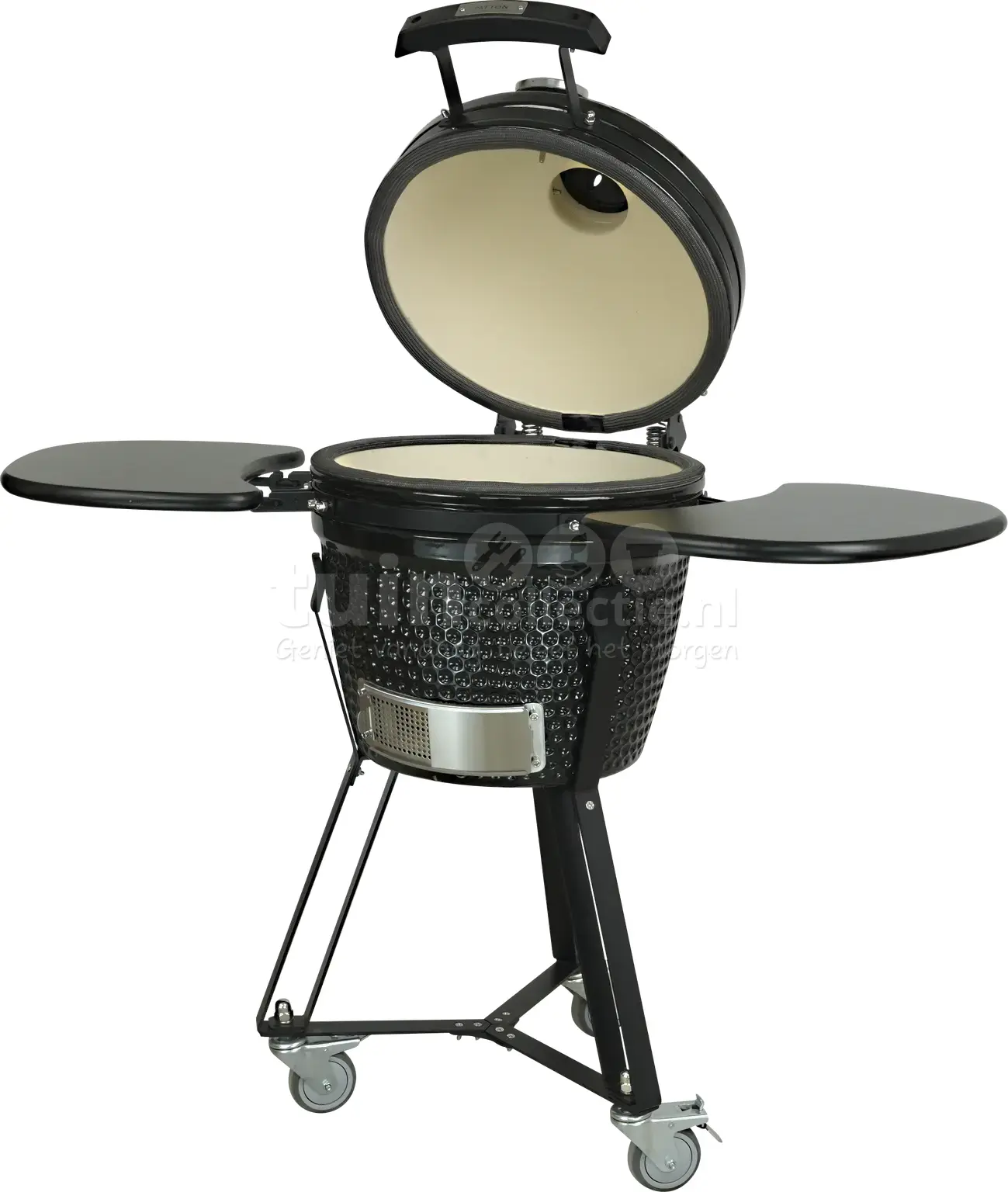 - Materiaal: Geglazuurd industrieel cordoriet Keramiek (bestand tot ca. 1000°C) en gepoedercoat staal