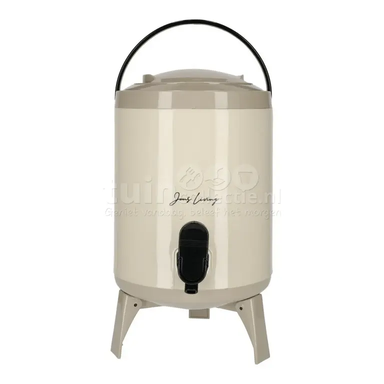 Deze sapdispenser set is ideaal voor een feestje, borrel of picknick, waar je de gasten eenvoudig van een drankje wilt voorzien. Maak een heerlijke verfrissende ijsthee of mocktail en tap het gemakkelijk in een beker. De dispenser is gemaakt van plastic en is trendy taupe van kleur. Hij heeft een inhoud van 4 liter en wordt als set geleverd, inclusief 4 bruine plastic bekers. Door zijn inklapbare pootjes en draaghengsel is hij heel gemakkelijk mee te nemen of te verplaatsen. Hij is 20cm hoog en heeft een diameter van 19cm. Ga jij binnenkort trendy op pad of voorzie je de gasten op een stijlvolle manier van een drankje met deze Jens Living sapdispenser set?!