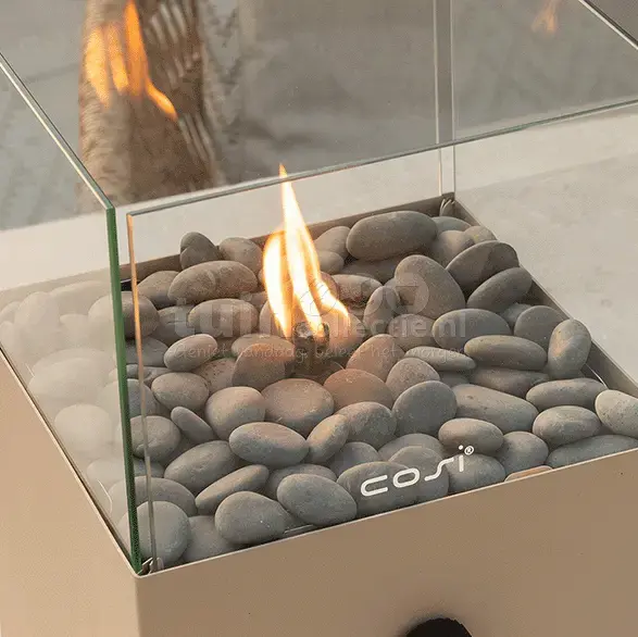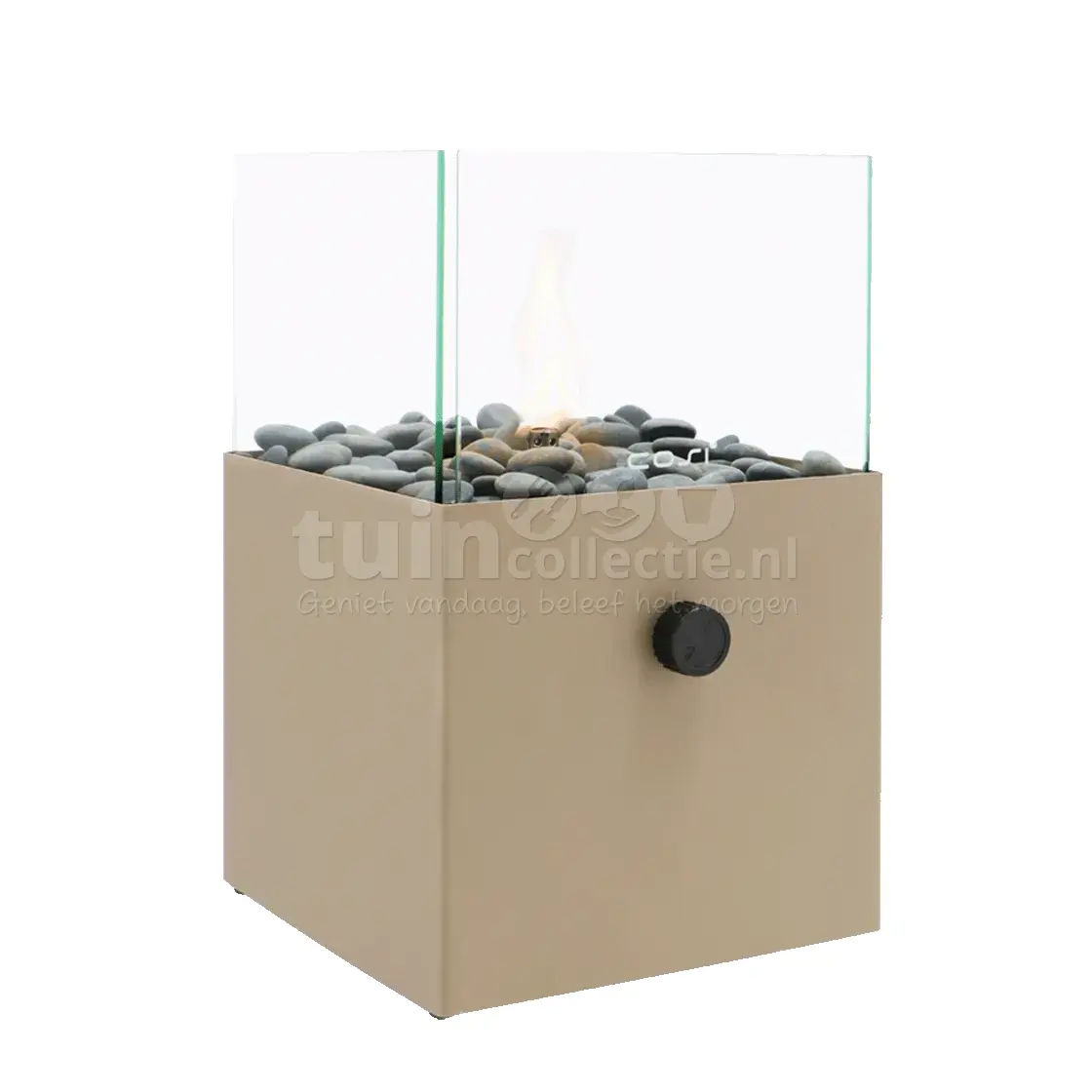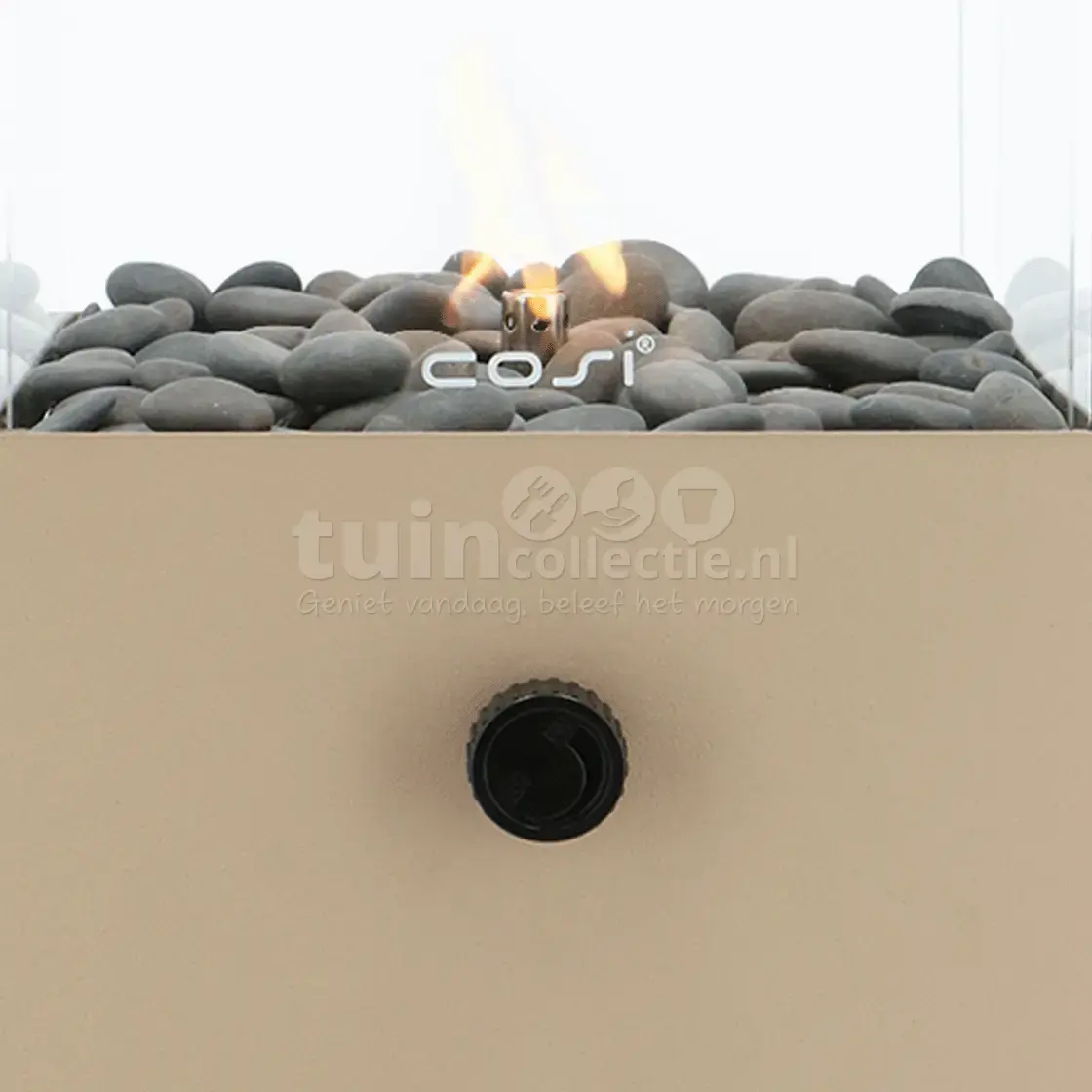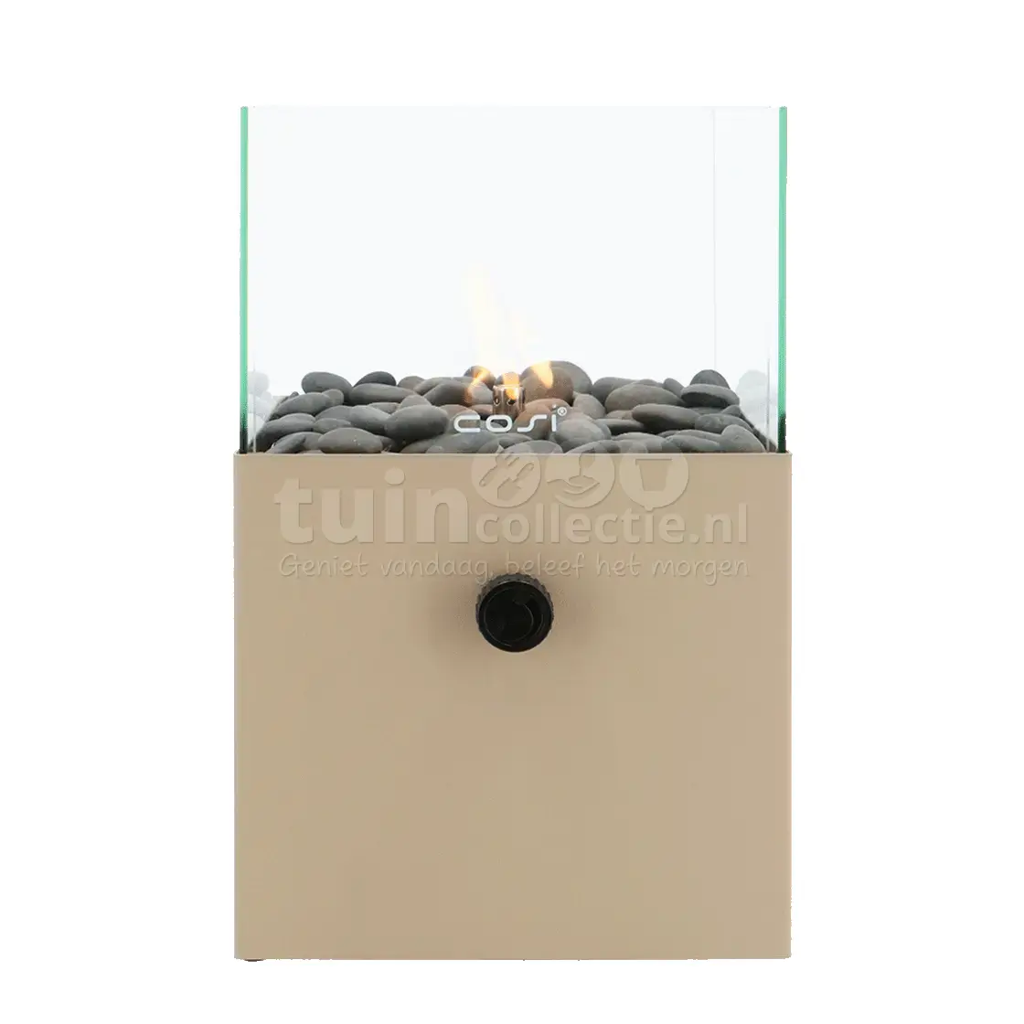 Met de Cosiscoop Square gaslantaarn breng je een unieke sfeer in huis en tuin! Deze moderne, vierkante gaslantaarn van het merk Cosi is gemaakt van gepoedercoat metaal en een vierkant transparant glas. Hij heeft de trendy kleur sandy beige, waarmee hij in vele soorten interieurs past en heeft een afmeting van 20x20x32,5cm. Daarnaast wordt hij geleverd met grijze kiezelstenen, wat voor een luxueuze uitstraling zorgt, zowel binnen in huis als op het terras in de tuin. De Cosiscoop Square gaslantaarn werkt op een 190 gram gascartouche en werkt daarmee 5 tot 6 uur. Ook leuk om cadeau te geven!