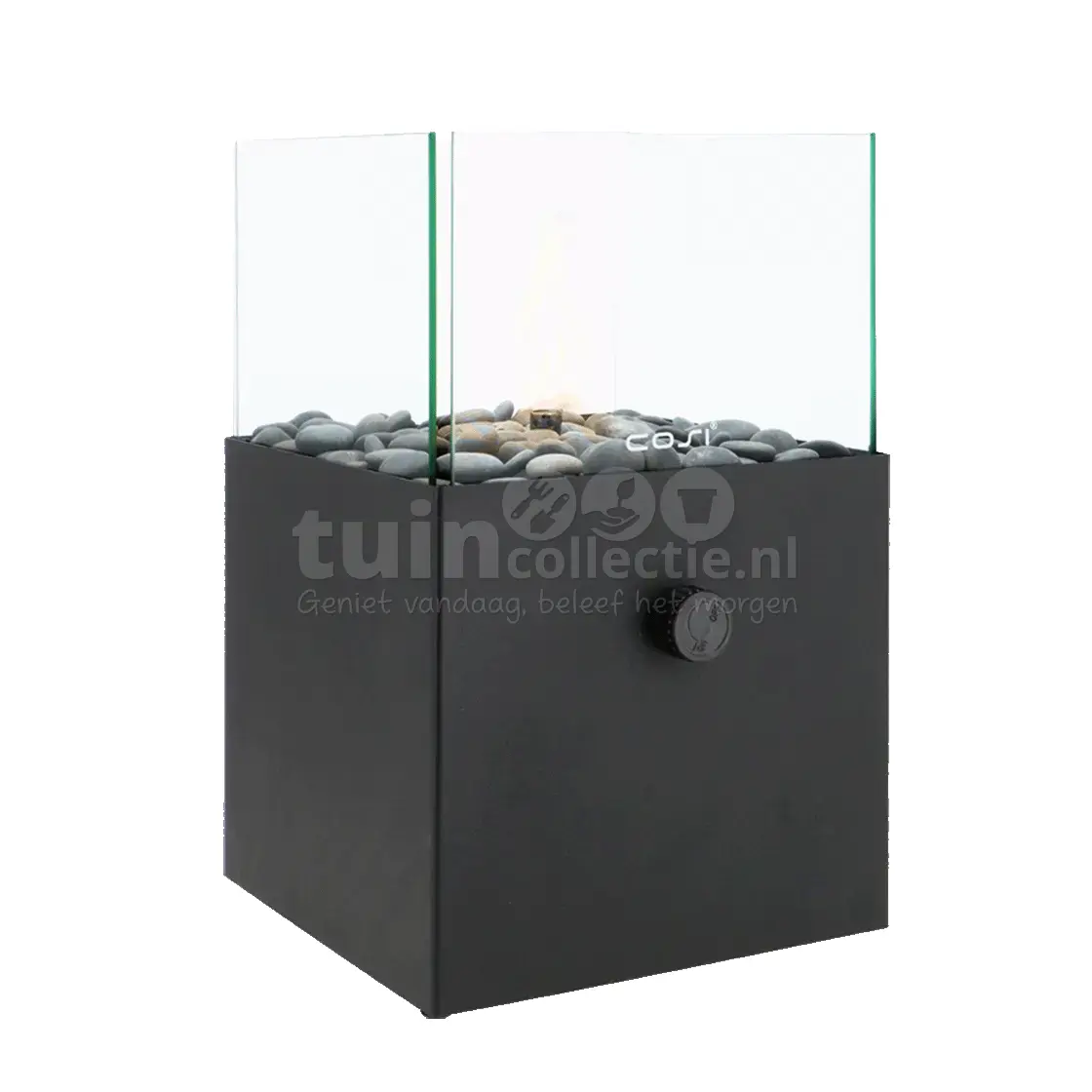 Met de Cosiscoop Square gaslantaarn breng je een unieke sfeer in huis en tuin! Deze moderne, vierkante gaslantaarn van het merk Cosi is gemaakt van gepoedercoat metaal en een vierkant transparant glas. Hij is zwart van kleur, waarmee hij in vrijwel ieder interieur past en heeft een afmeting van 20x20x32,5cm. Daarnaast wordt hij geleverd met grijze kiezelstenen, wat voor een luxueuze uitstraling zorgt, zowel binnen in huis als op het terras in de tuin. De Cosiscoop Square gaslantaarn werkt op een 190 gram gascartouche en werkt daarmee 5 tot 6 uur. Ook leuk om cadeau te geven!