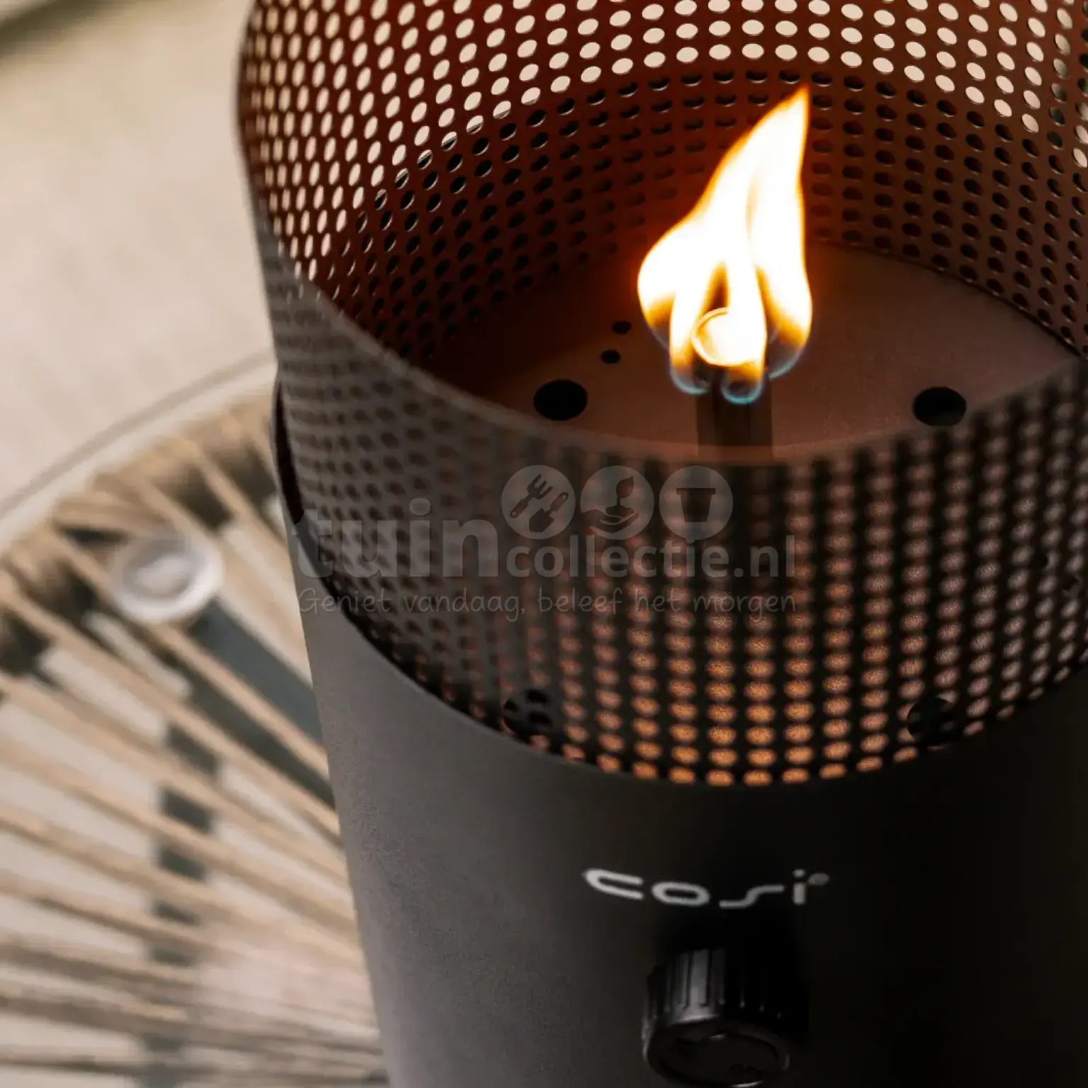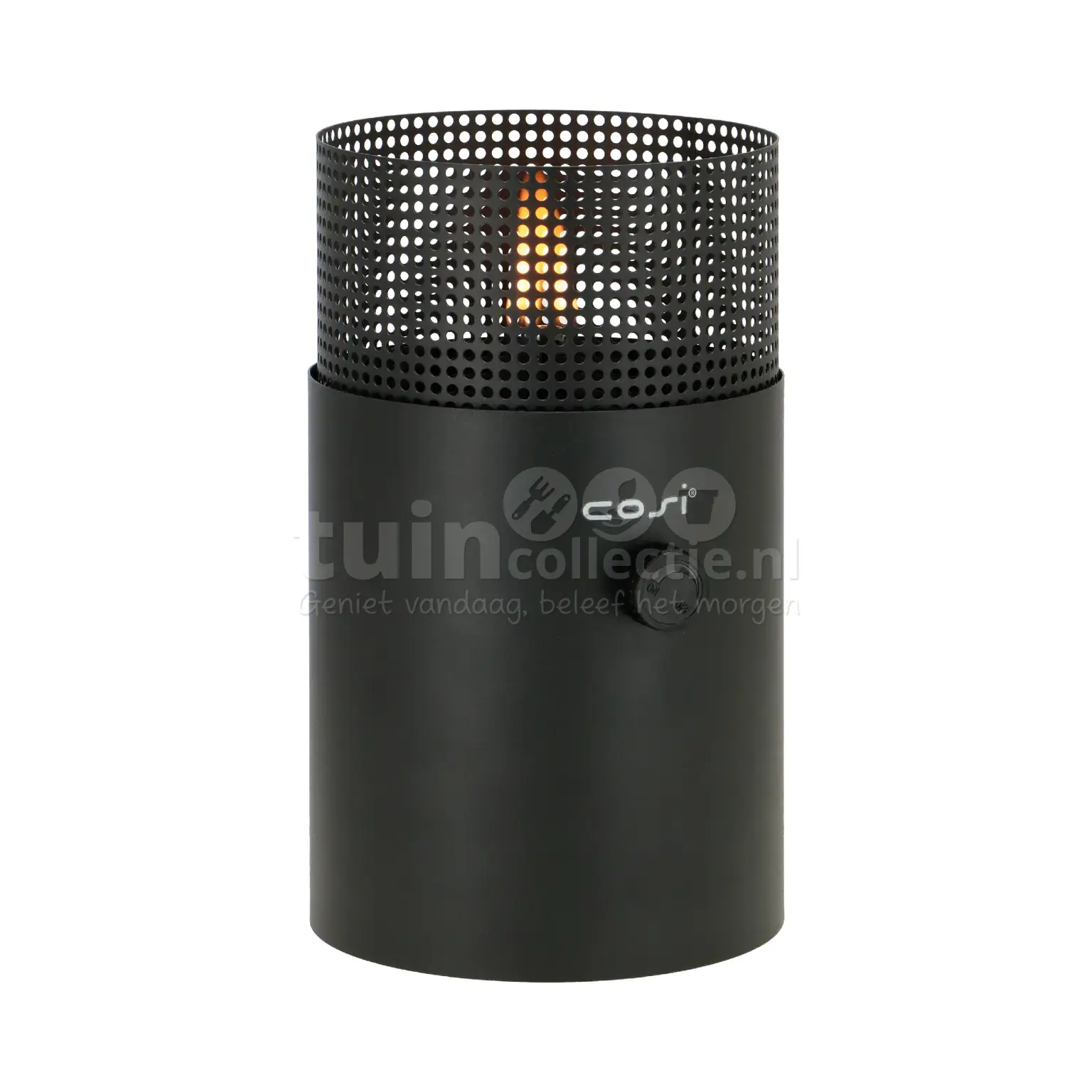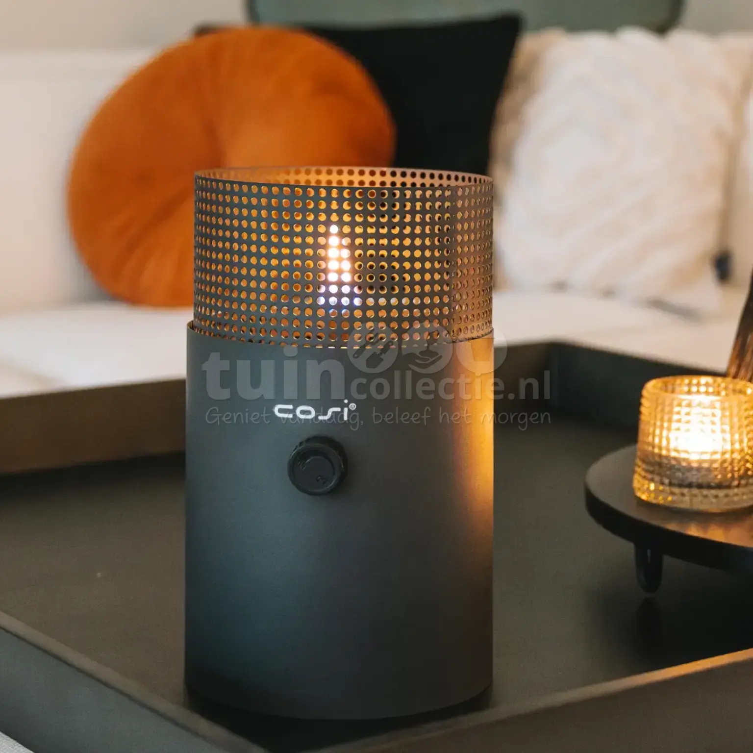 Met de Cosiscoop DOT gaslantaarn breng je een unieke sfeer in huis en tuin! Deze moderne tafelmodel gaslantaarn van het merk Cosi is gemaakt van gepoedercoat metaal en een metalen top met ronde uitsparingen, wat voor een mooie verdeling van het vlamlicht zorgt. De lantaarn is antraciet van kleur, waarmee hij in vrijwel ieder interieur past en is 27cm hoog met een diameter van 16cm. De Cosiscoop DOT gaslantaarn werkt op een 190 gram gascartouche en werkt daarmee 5 tot 6 uur. Ook leuk om cadeau te geven!