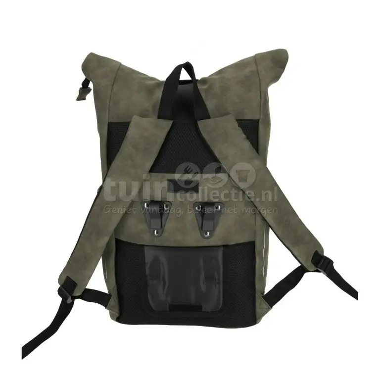 De NORLÄNDER Nubuck fiets rugzak is de ideale tas om het hele land mee door te trekken op de fiets. De rugzak is gemaakt van vegan leer in de kleur groen en heeft een unieke, chique uitstraling. Hij is geschikt voor ieder weertype door de gecoate ritssluiting en het waterafstotende vegan leer. Middels de fietshaken aan de achterzijde van de tas kun je hem eenvoudig aan de bagagedragers bevestigen. Daarnaast bestaat deze Nubuck fiets rugtas aan de binnenzijde over een ruim compartiment met laptopvak en een afsluitbaar binnenvakje. Aan de buitenkant is aan beide zijden een insteekhoes, ideaal voor een drinkfles. Aan de voorzijde zit nog een extra afsluitbaar opbergvak. De bovenzijde van de Nubuck rugzak is eenvoudig op te rollen en vast te zetten met de zwarte band en gesp. De rugzijde en verstelbare schouderbanden zijn voorzien van een foam voering, waardoor hij een fijn draagcomfort heeft. Deze stoere NORLÄNDER Nubuck fiets rugtas is een echte must-have voor fietstochten of andere gelegenheden.