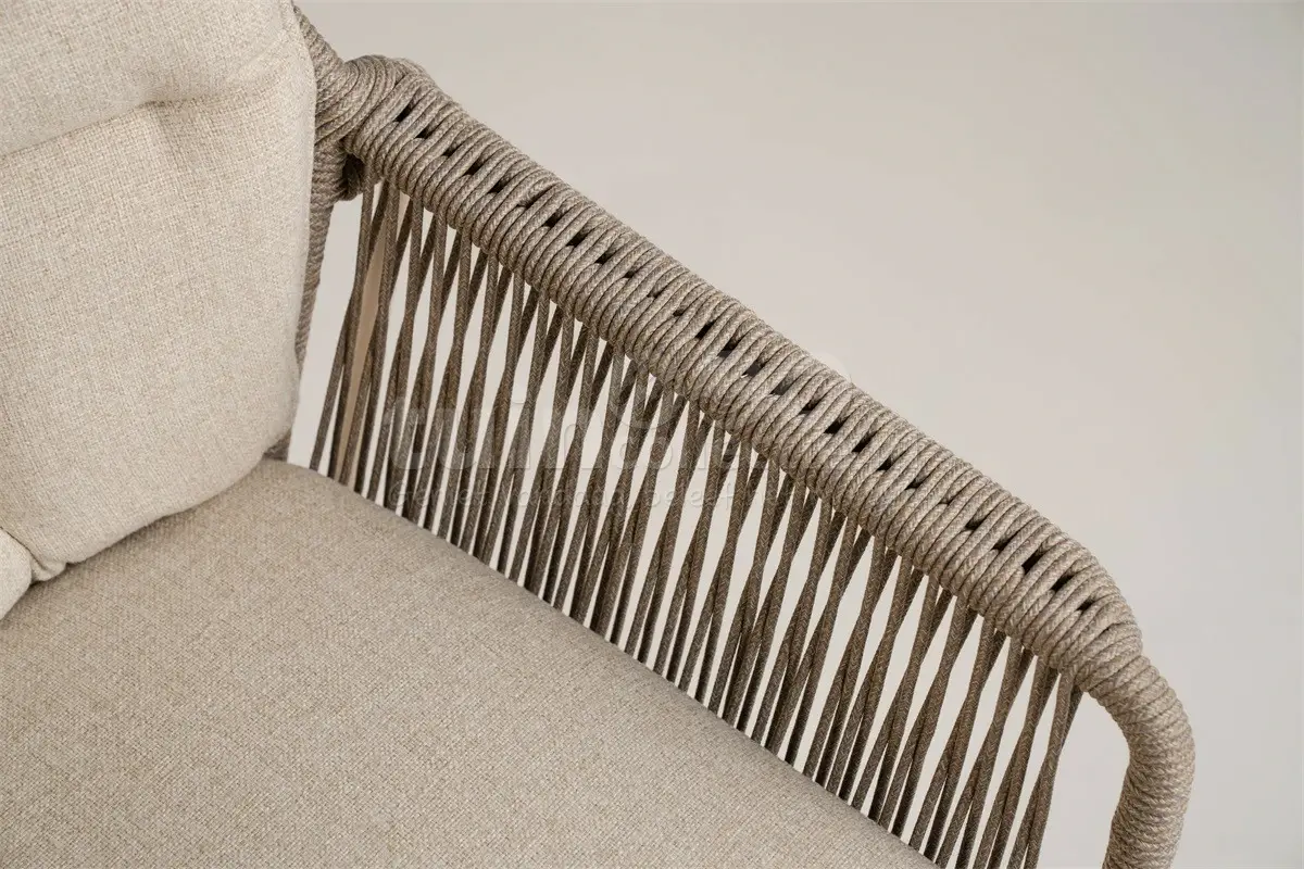 Aluminium en olefin touw zijn beide sterke, weerbestendige en duurzame materialen, wat zorgt voor een uitstekende levensduur. Ook het Swiss Fabric stof van de kussens kan prima tegen een regenbui door de waterafstotende coating. Voor een optimale levensduur, raden we wel aan om de kussens bij slecht weer of regenachtige dagen op te bergen en de stoel in de wintermaanden af te dekken of binnen op te bergen. De rope olefin rugleuning en de kussens kunnen gereinigd worden met de Power Cleaner en extra beschermd worden met de Nano Protector. Het aluminium kan eenvoudig met een lauwwarm sopje gereinigd worden. Gebruik hierbij altijd een schone, zachte doek of spons en een mild reinigingsmiddel. Maak aluminium nooit schoon met een hogedrukspuit of agressieve reinigingsmiddelen.