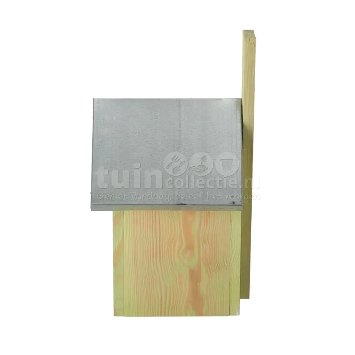 Dit nestkastje is gemaakt van 100% FSC hout en is voorzien van een zinken dak. Aan de voorzijde zit een kleine opening, precies groot genoeg voor de Pimpelmees. Om het nestkastje in het najaar schoon te maken, is de bodem er eenvoudig uit te halen. Tevens is het kastje aan de achterzijde voorzien van een lat, waarmee het met twee schroeven aan de muur bevestigd kan worden (schroeven niet inbegrepen).